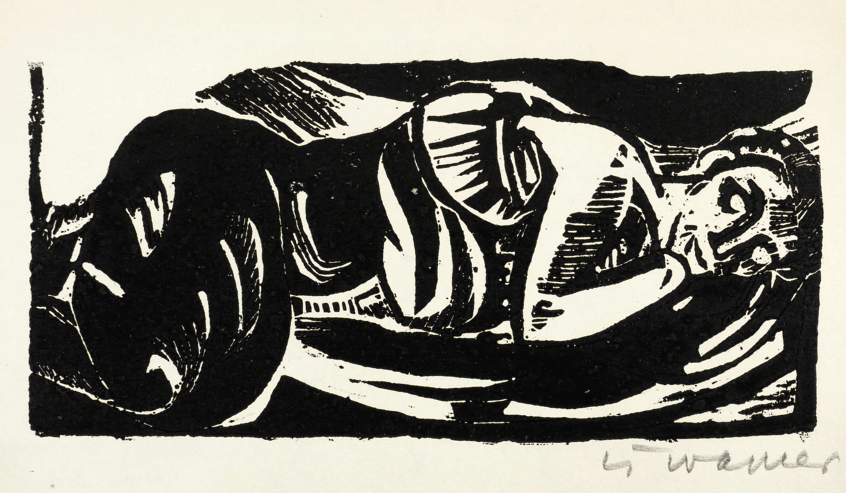 1973. Holzschnitt, in Schwarz, auf gelblichem Papier. – Von Siegfried Wagner. – 12,3 x 25,4 cm (Darstellung / Druckstock), 21 x 30 cm (Blatt).
