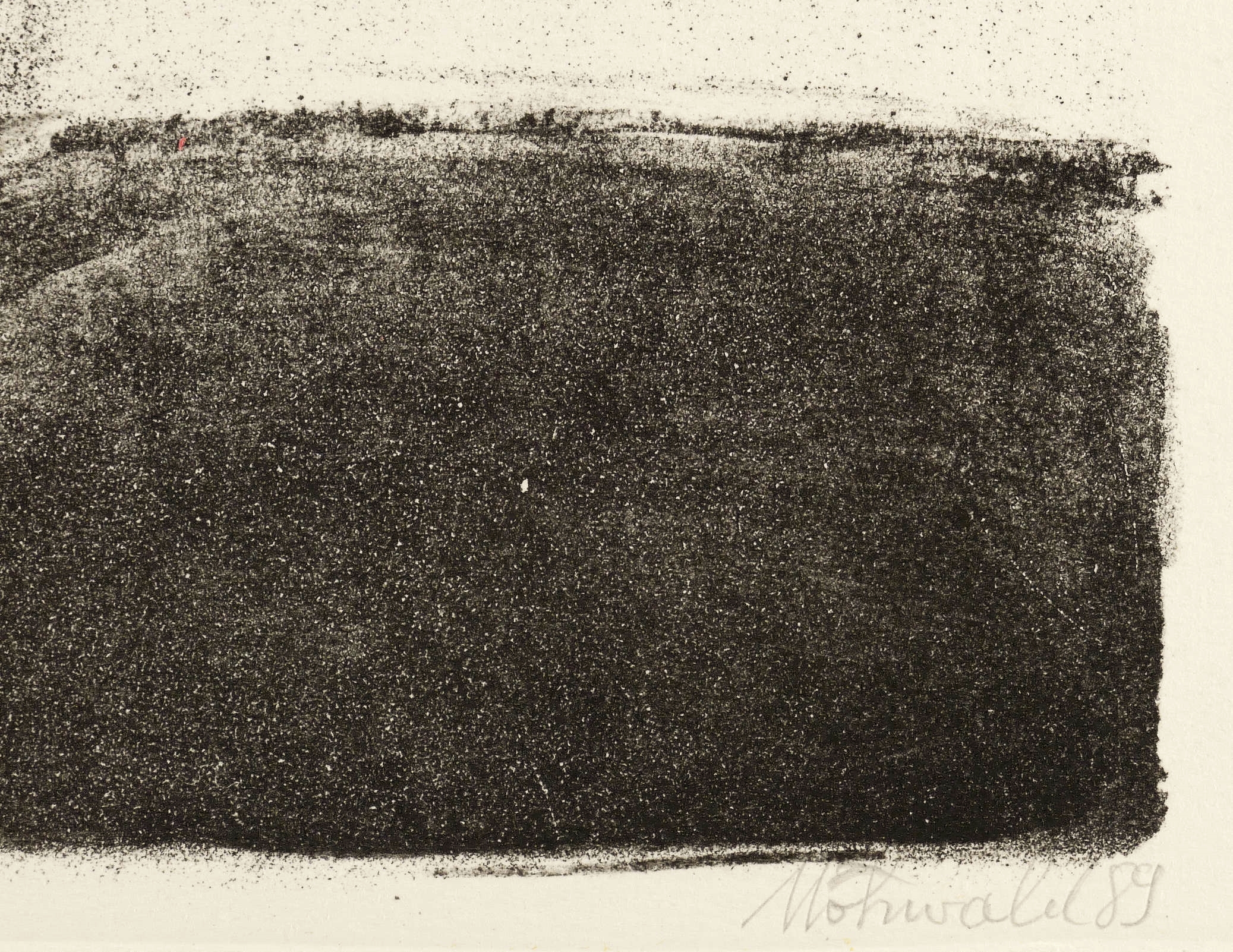1989. Lithografie / Kreide- & Pinsellithografie, partiell mit Spritzton, in Schwarz, auf Hahnemühle-Bütten. – Originale Künstlergrafik, von Otto Möhwald. – Auflage Exemplar Nr. 4/100. – 41,0 x 46,0 cm (Darstellung), 49 x 59 cm (Blatt).