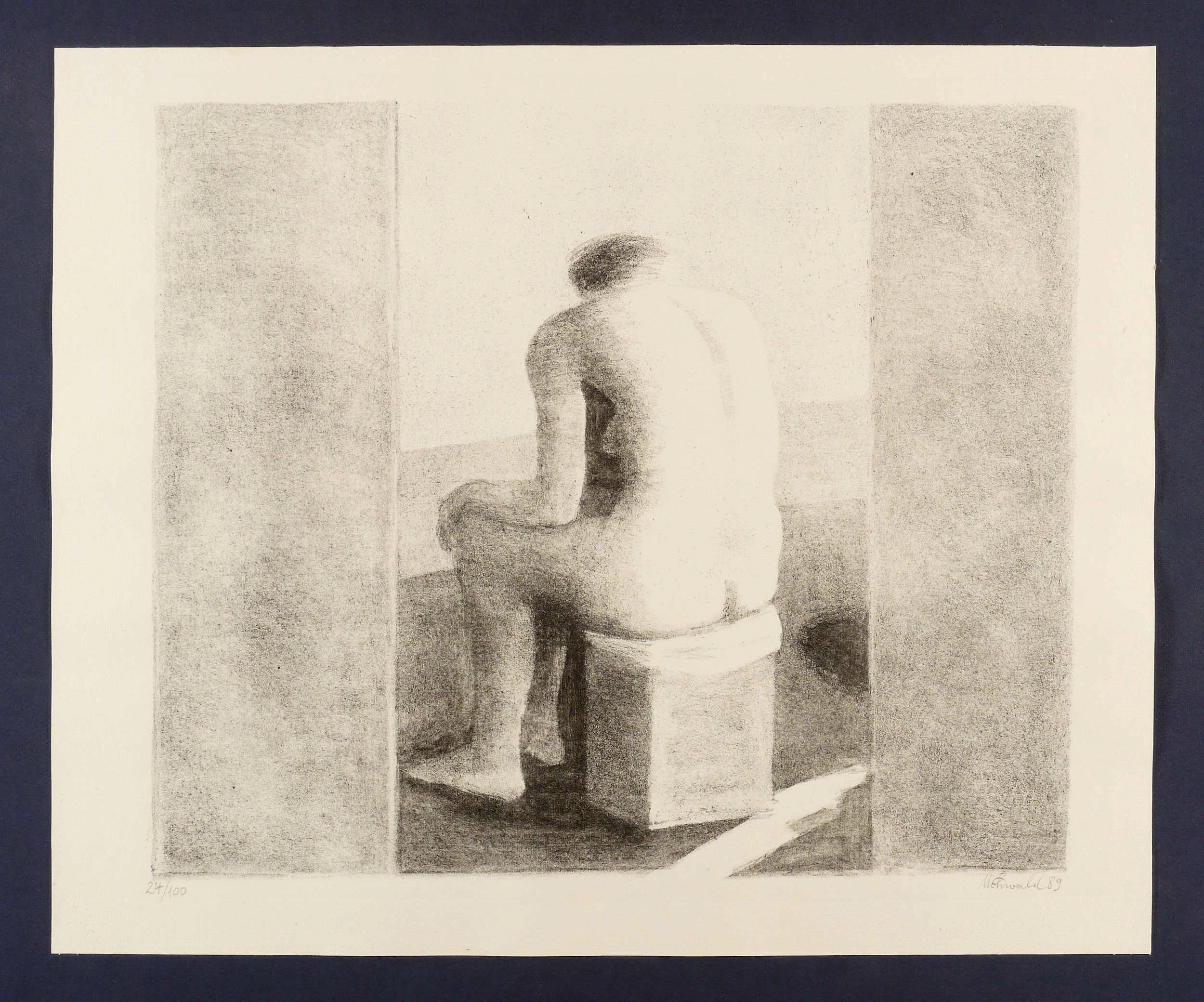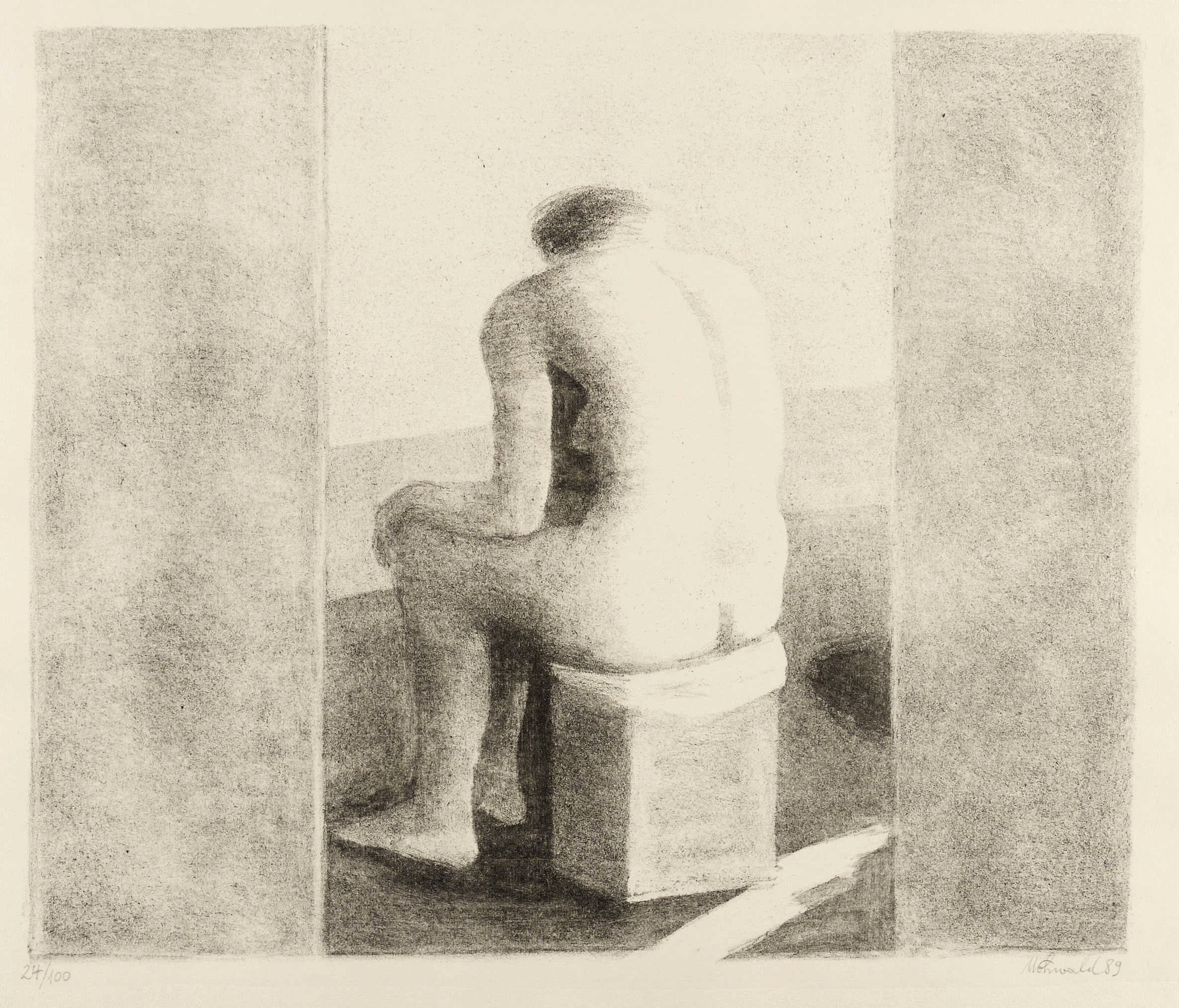 1989. Lithografie / Kreidelithografie, partiell gespritzt, in Schwarz, auf Hahnemühle-Bütten. – Von Otto Möhwald. – Auflage Exemplar Nr. 24/100. – 40,0 x 47,6 cm (Darstellung), 49 x 59 cm (Blatt).