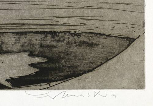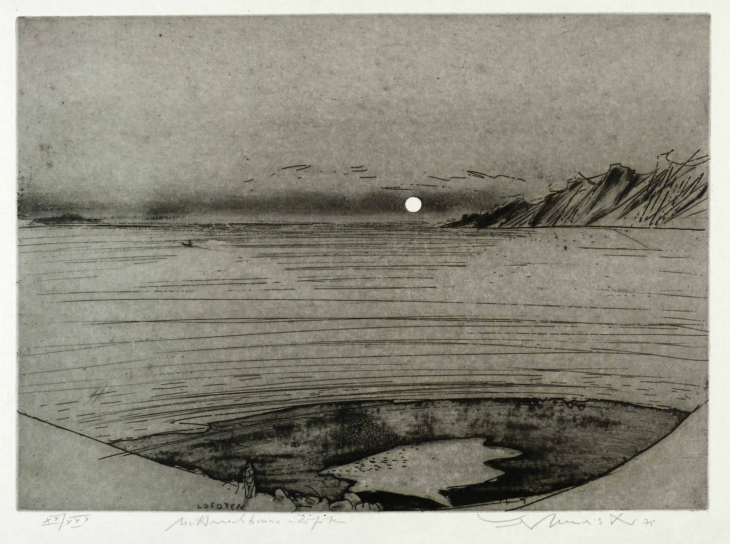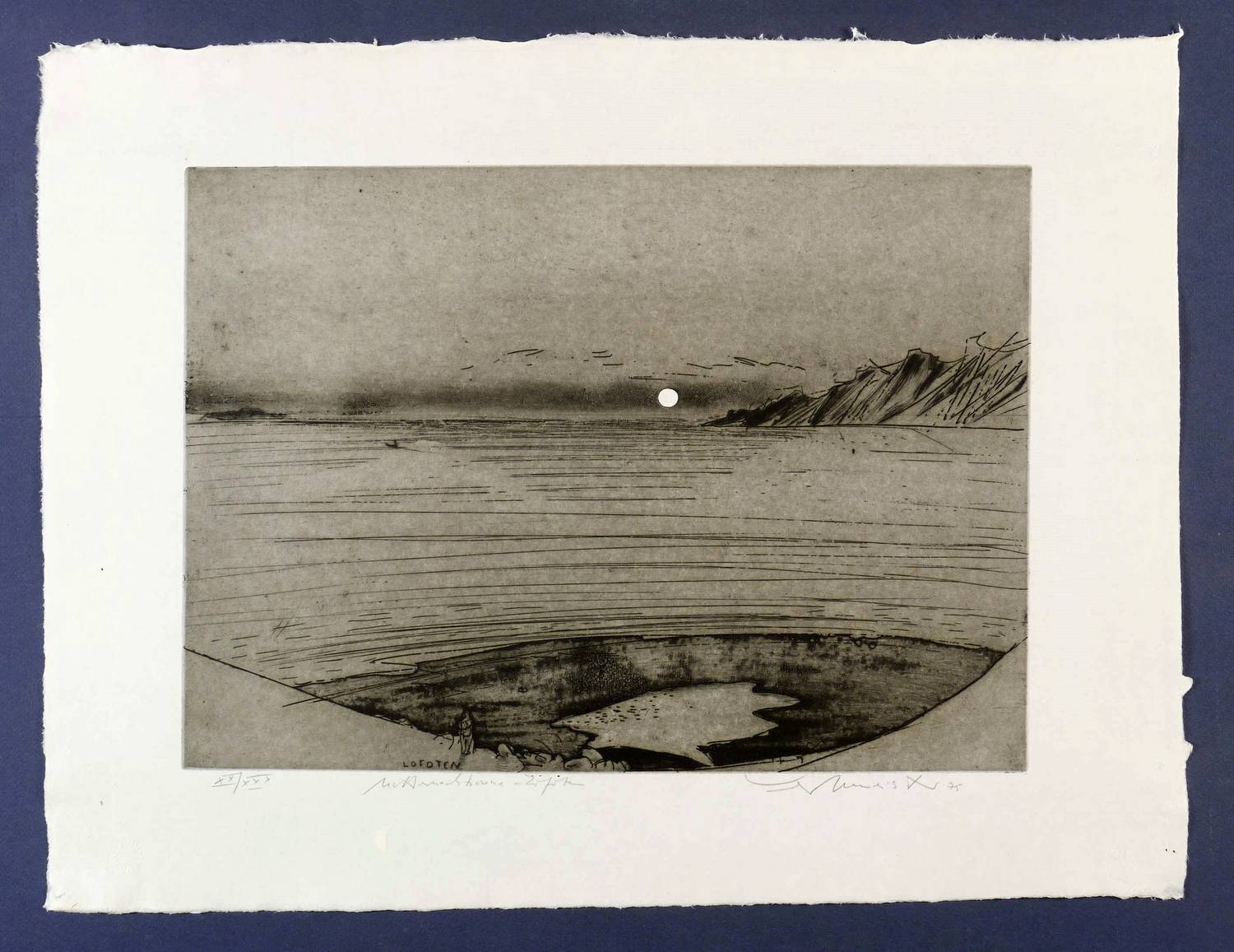 Werkmeister I 170. – Rechts unten in Bleistift signiert und datiert. Links Auflagenbezeichnung und Titel. In der Platte links unter dem angedeuteten Paar zusätzlich bezeichnet: ″LOFOTEN″. Im Blattrand rechts unten Prägestempel: ″Druck Werkmeister″. – Römisch nummerierte zweite Auflage. – Zwei Spritzer Druckfarbe in der rechten unteren Ecke. Sonst sehr guter Zustand.