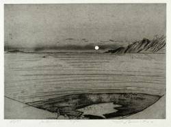 Wolfgang Werkmeister (*1941 Berlin, lebt und arbeitet in Hamburg). Deutscher Grafiker, bedeutender Vertreter der zeitgenössischen Radierkunst. 1960-64 Besuch der Akademie der Bildenden Künste Stuttgart, Fachklasse für freie Grafik und Illustration bei Gunther Böhmer. 1965 Besuch der Fachhochschule für Gestaltung Hamburg bei W. M. Busch und S. Oelke. 1966-68 tätig als Pressezeichner. 1972/73 Dozent an der Fachhochschule für Gestaltung, Hamburg. Zahlreiche Auslanfsaufenthalte und Stipendien in Marokko, USA, auf den Kanarischen Inseln, etc. 2001 Kunstpreis der Stadt Baden-Baden. Zentrales Ausdrucksmittel ist die Radierung, genauer die Aquatinta, in der er Landschaft als Hauptmotiv regelrecht zelebriert und in technisch ebenso aufwändigen wie raffinierten Blättern druckgrafisch umsetzt. Stilistisch siedelt sein Werk zwischen einem geschickt eingesetzten Fotorealismus und der lakonischen Bildsprache eines Ansel Adams.
