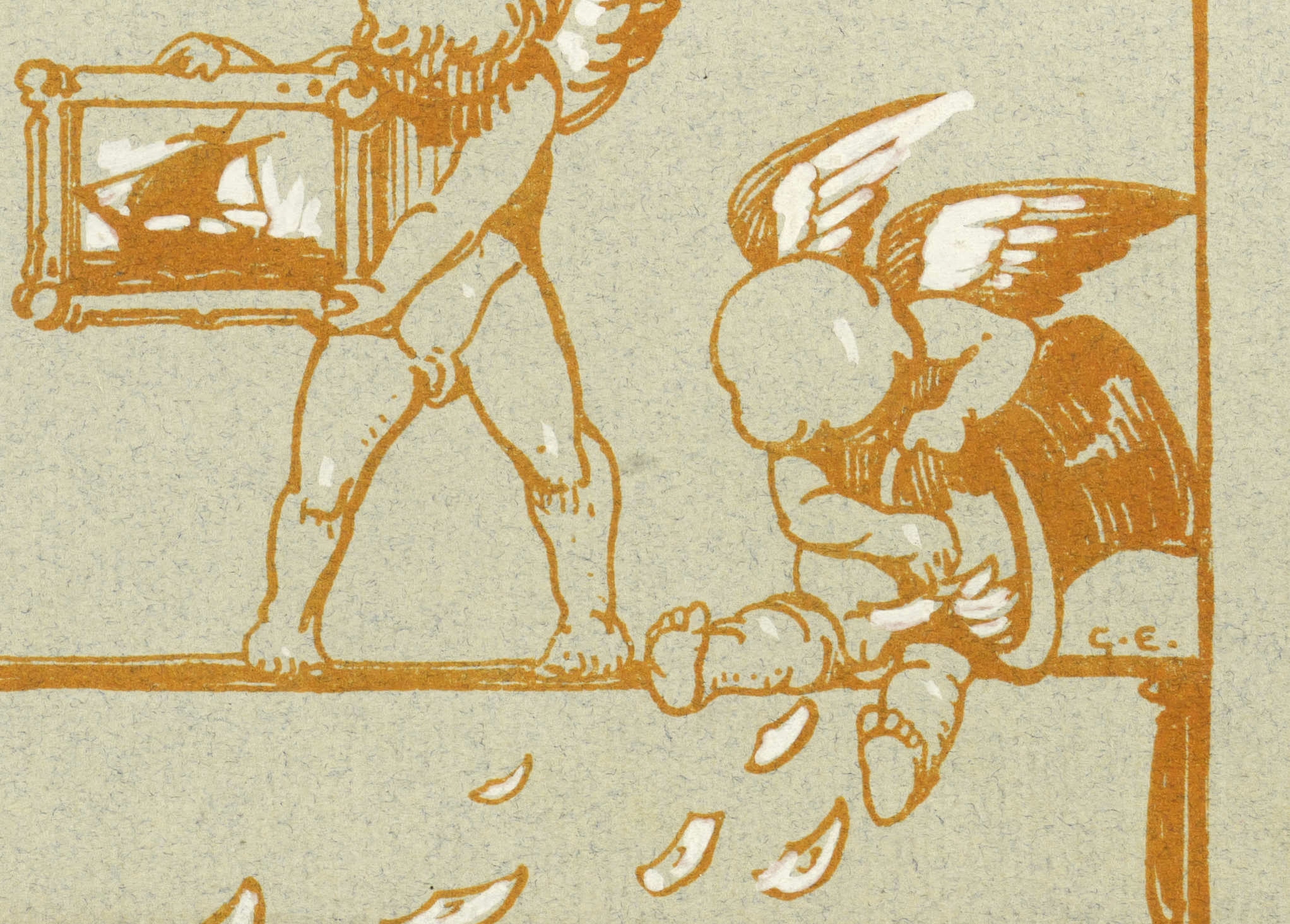 Erler, Georg. – Zwei Putti mit Lostrommel und Gemälde. – Einladung. – „Kunstfreundeabend Elbier”.