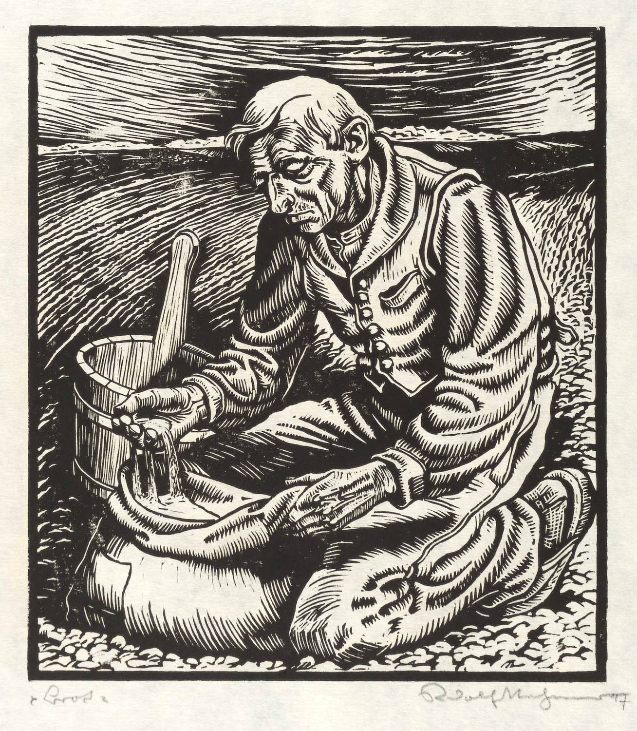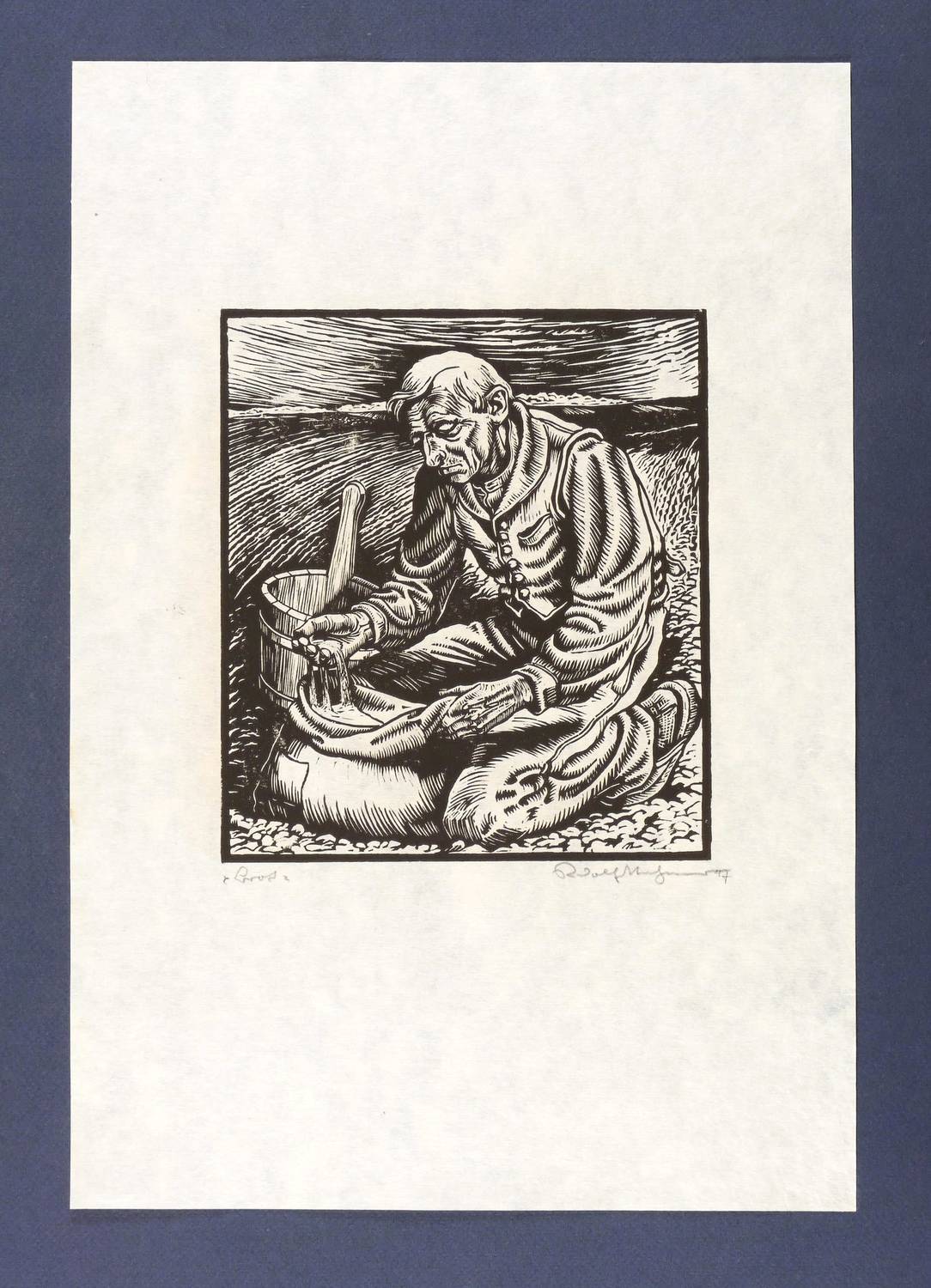 Rechts unten in Bleistift signiert und datiert. – Blatt aus der bekannten Holzschnitt-Folge ″Bauern″. – Sehr gutes Exemplar. Tadellos erhalten.