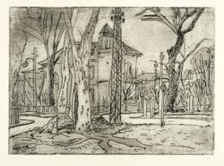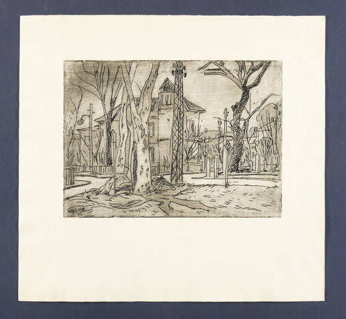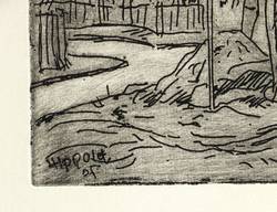 1970. Radierung / Strichätzung, partiell geschliffen, in Schwarz, auf hellgelbem Karton. – Originale Künstlergrafik, von Erhard Hippold. – 19,3 x 26,7 cm (Darstellung / Platte), 35 x 37,5 cm (Blatt).