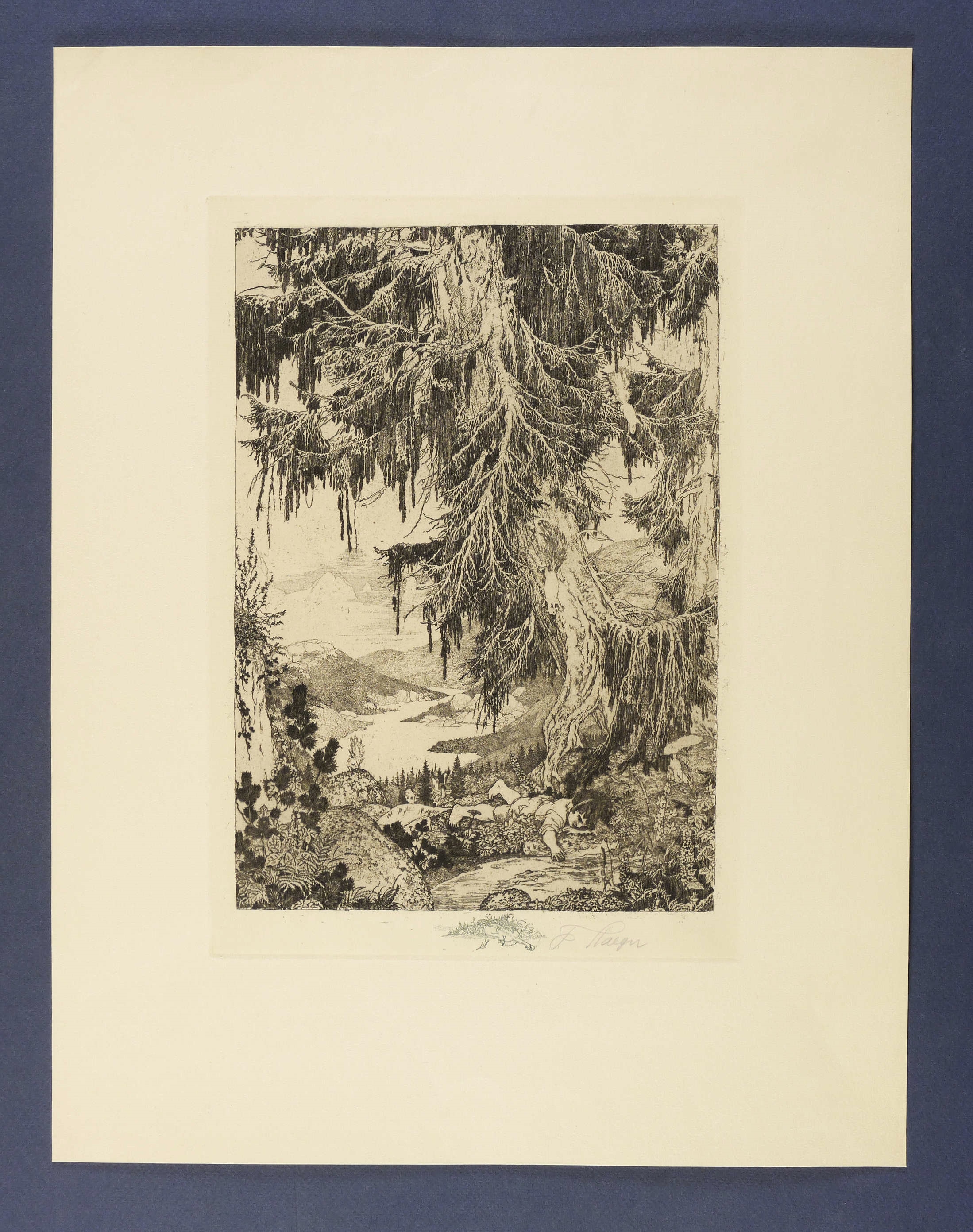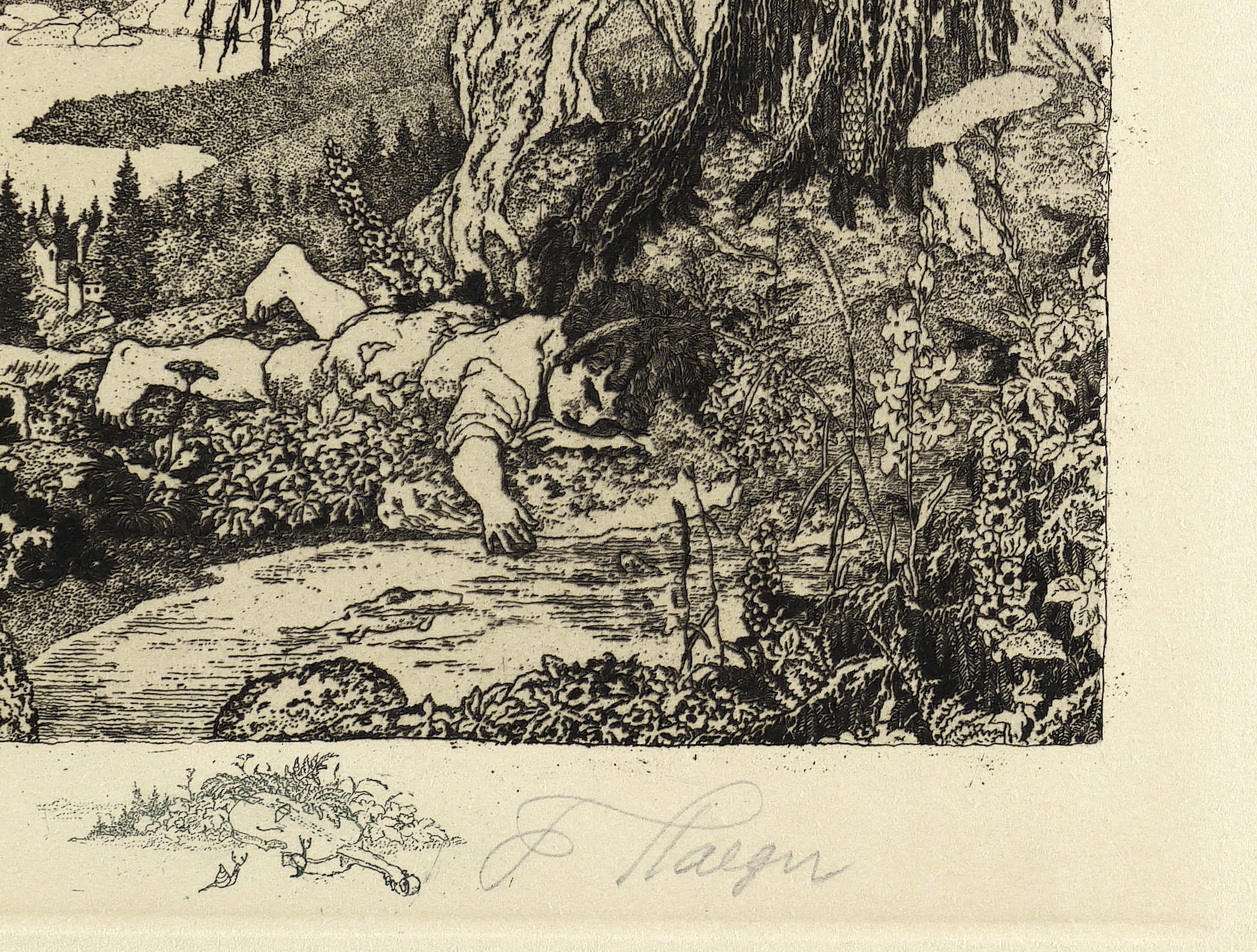 Muschler 35. – In der Platte rechts unten in Bleistift signiert. – Hauptblatt des Künstlers. – Randeinfall im unteren Plattenrand in Grün gedruckt. – Kaum merkliche Knickspuren. Noch sehr guter Zustand.