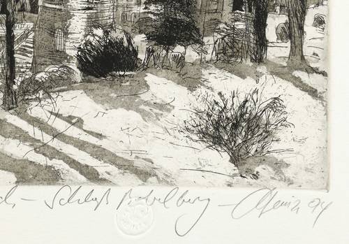 Rechts unten in Bleistift signiert und datiert. Links Auflagenbezeichnung. Mittig Titel. Dazu Trockenstempel des Künstlers. – Sehr guter Zustand.