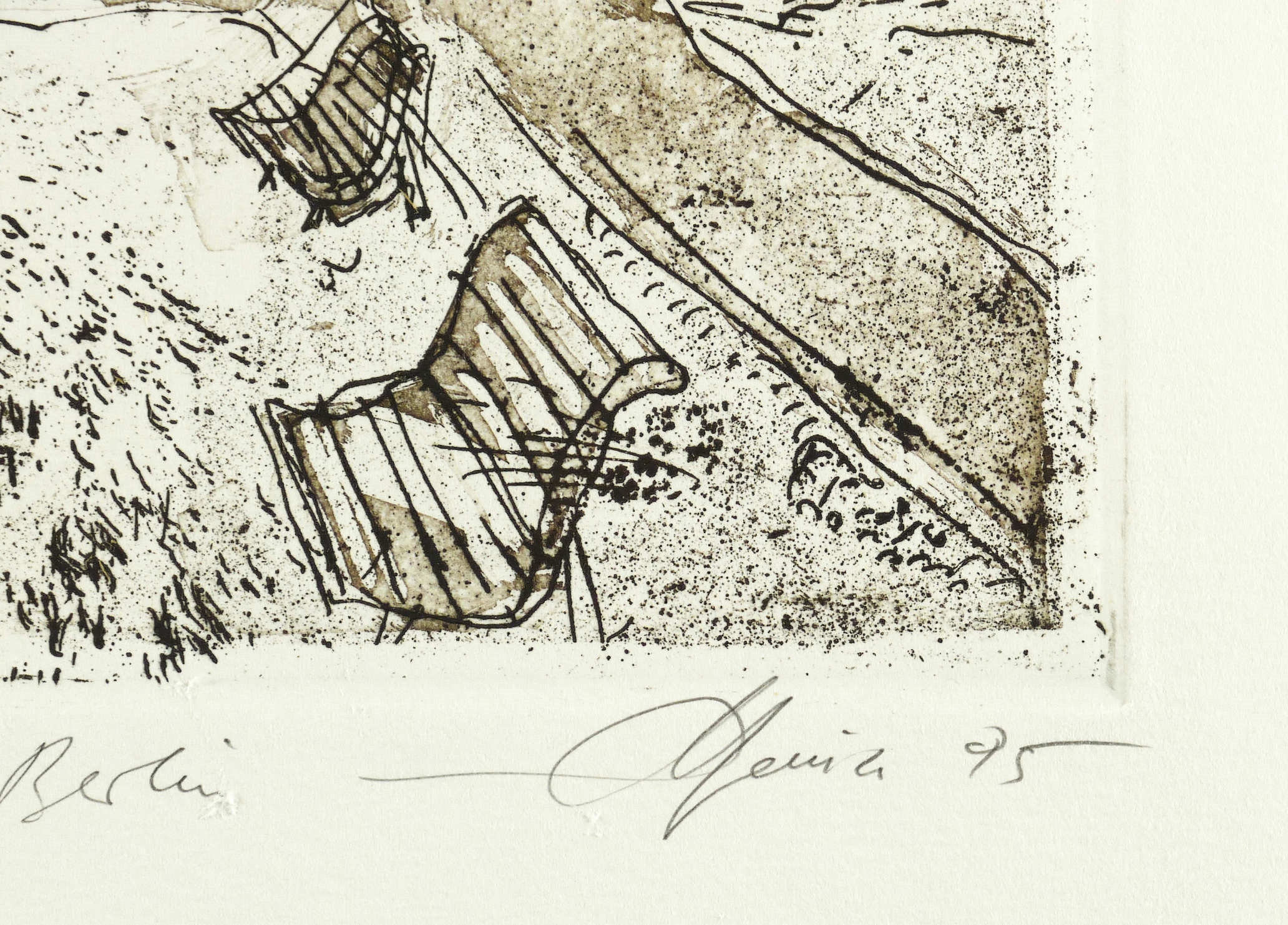 1995. Radierung / Aquatinta & Strichätzung, in Dunkelbraun, auf hellchamois Büttenkarton. – Originale Künstlergrafik, von Christian Heinze. – Auflage Exemplar Nr. 30/60. – 28,8 x 23,1 cm (Darstellung), 29,9 x 24,7 cm (Platte), 53,5 x 38,5 cm (Blatt).