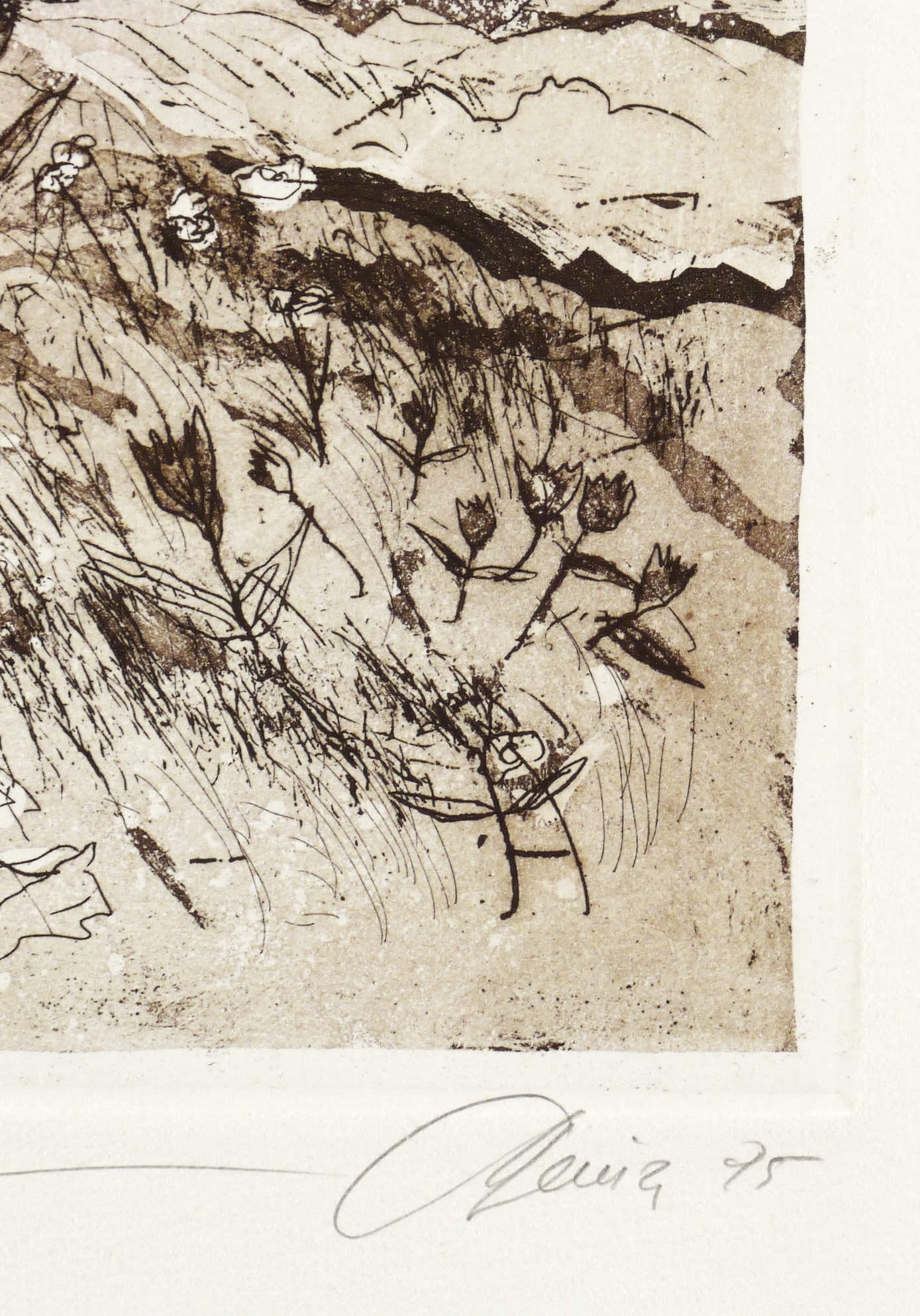 1995. Radierung / Aquatinta & Strichätzung, in Dunkelbraun, auf hellchamois Hahnemühle-Bütten. – Originale Künstlergrafik, von Christian Heinze. – Auflage Exemplar Nr. 13/60. – 23,5 x 28,5 cm (Darstellung), 24,7 x 29,8 cm (Platte), 40 x 54 cm (Blatt).