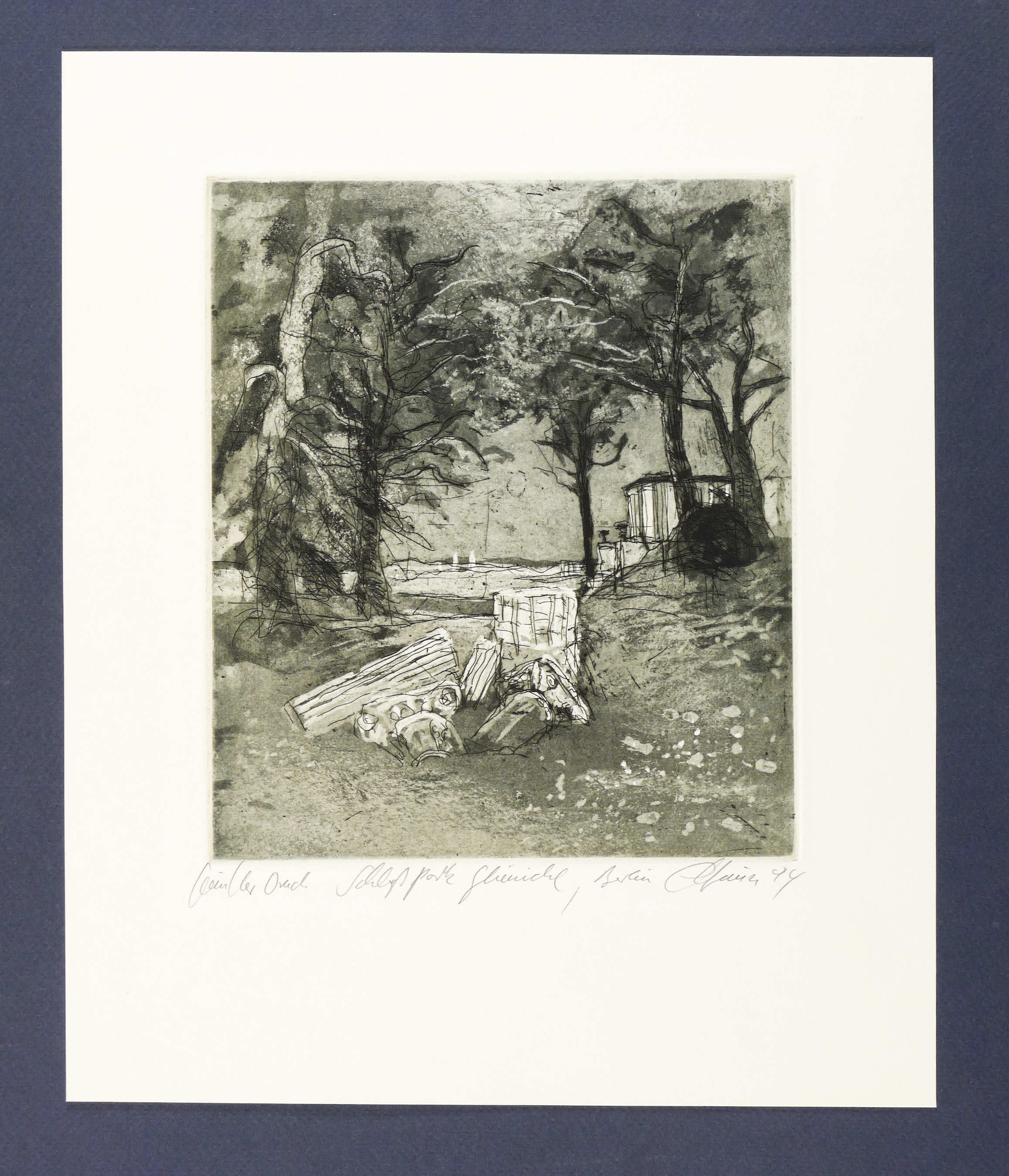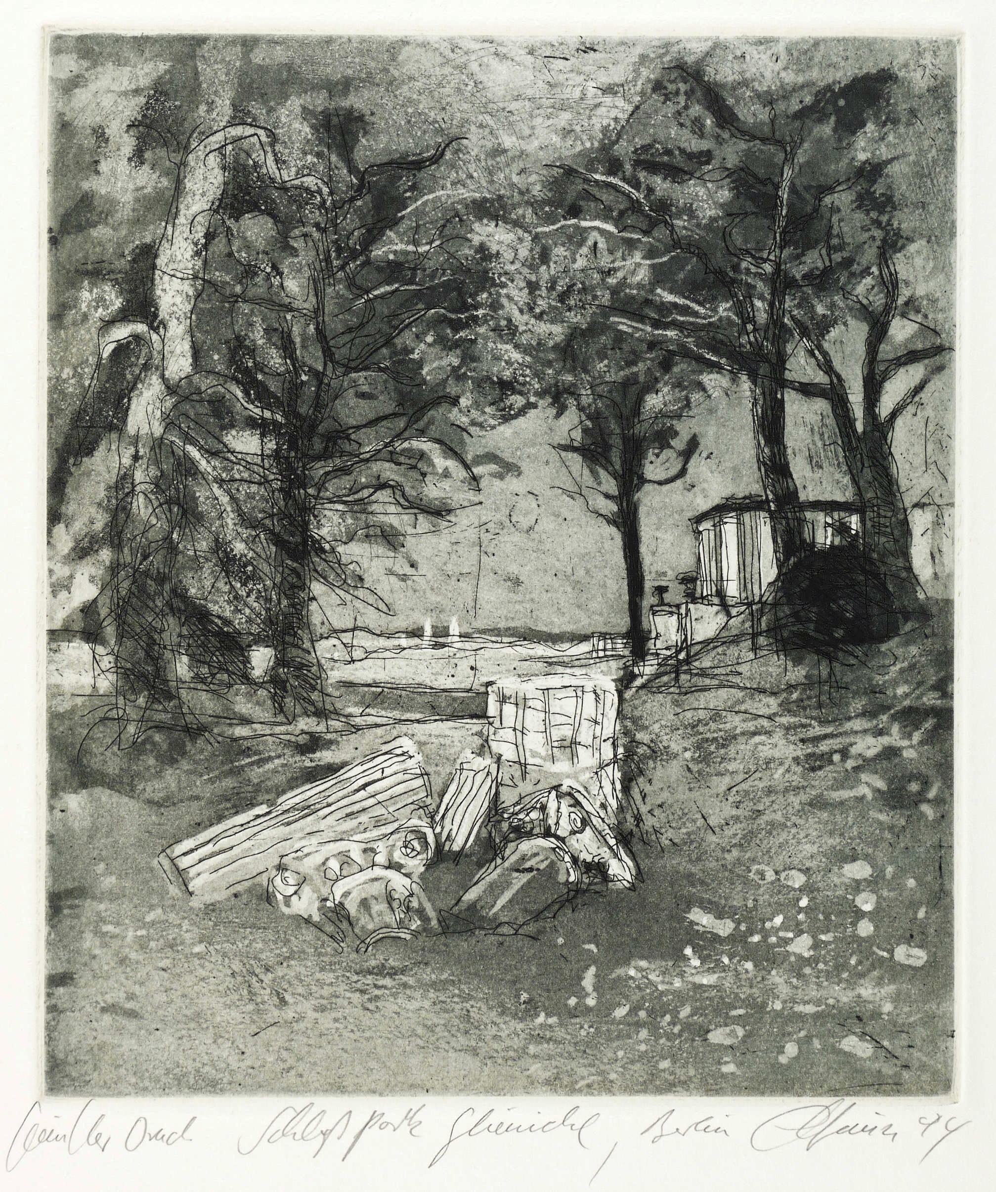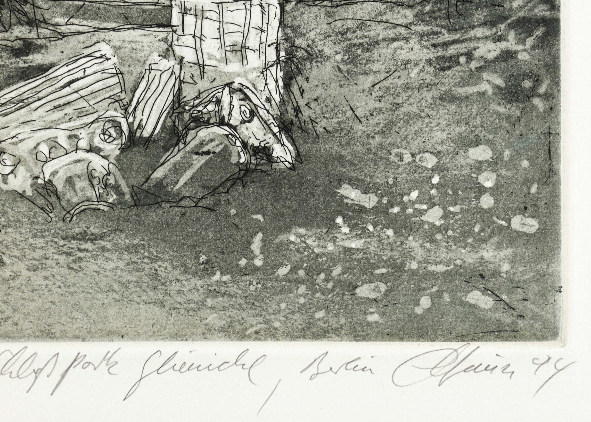 1994. Radierung / Aquatinta & Strichätzung, in Schwarz, auf hellchamois Büttenkarton. – Originale Künstlergrafik, von Christian Heinze. – Künstlerexemplar (e.a.). – 20,6 x 17,7 cm (Darstellung / Platte), 32 x 26 cm (Blatt).