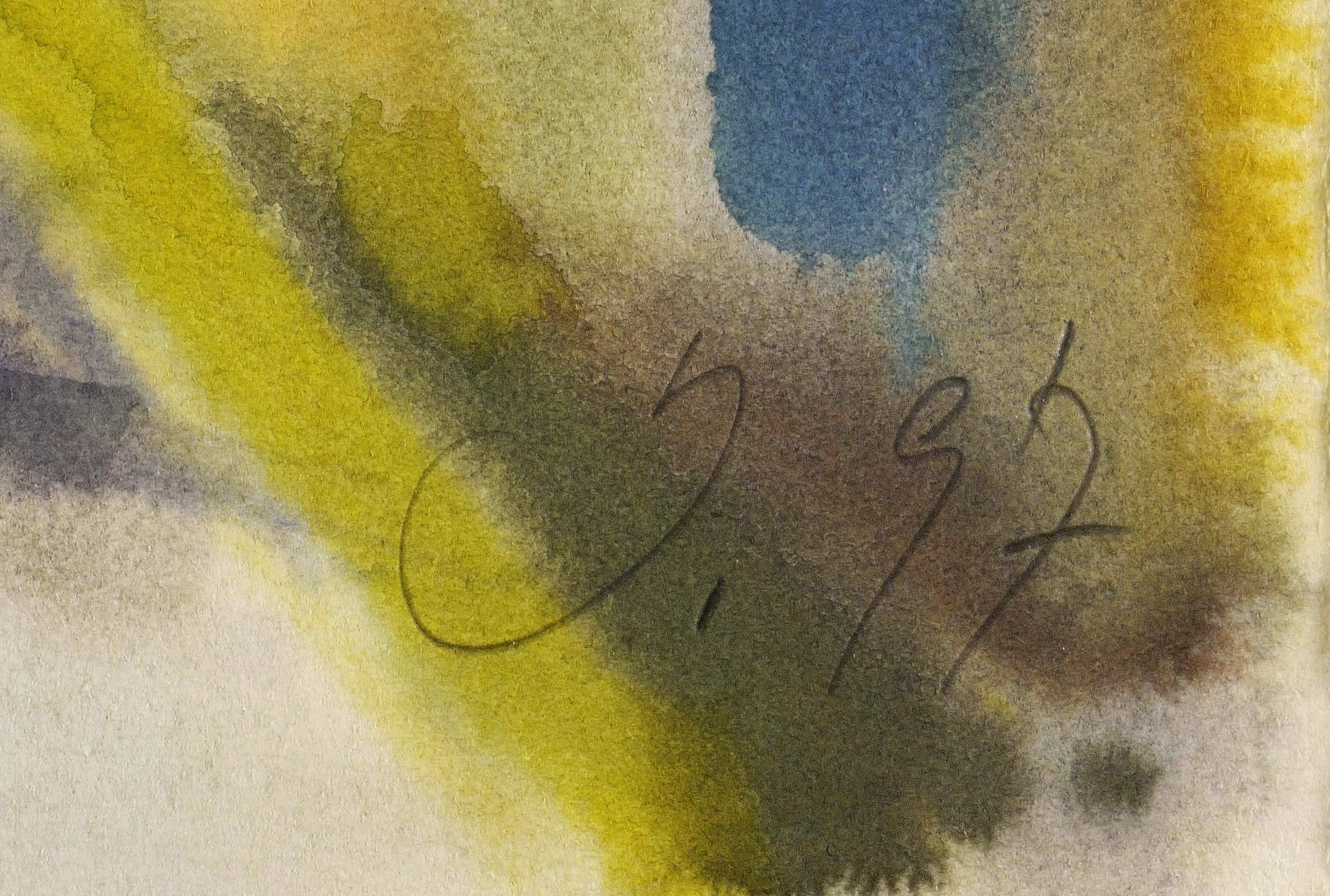 1997. Aquarell, auf hellem Büttenkarton. – Originale Künstlergrafik, von Werner Juza. – Unikat. – 24,3 x 30,8 cm (Darstellung / Blatt).
