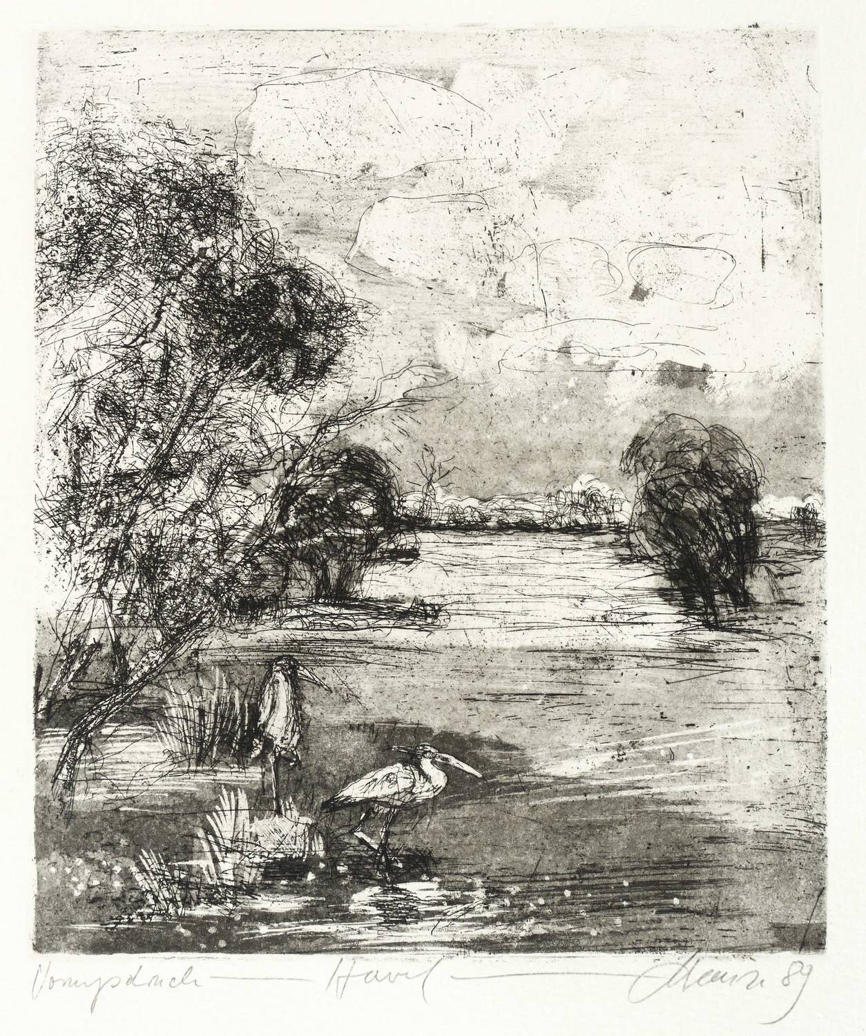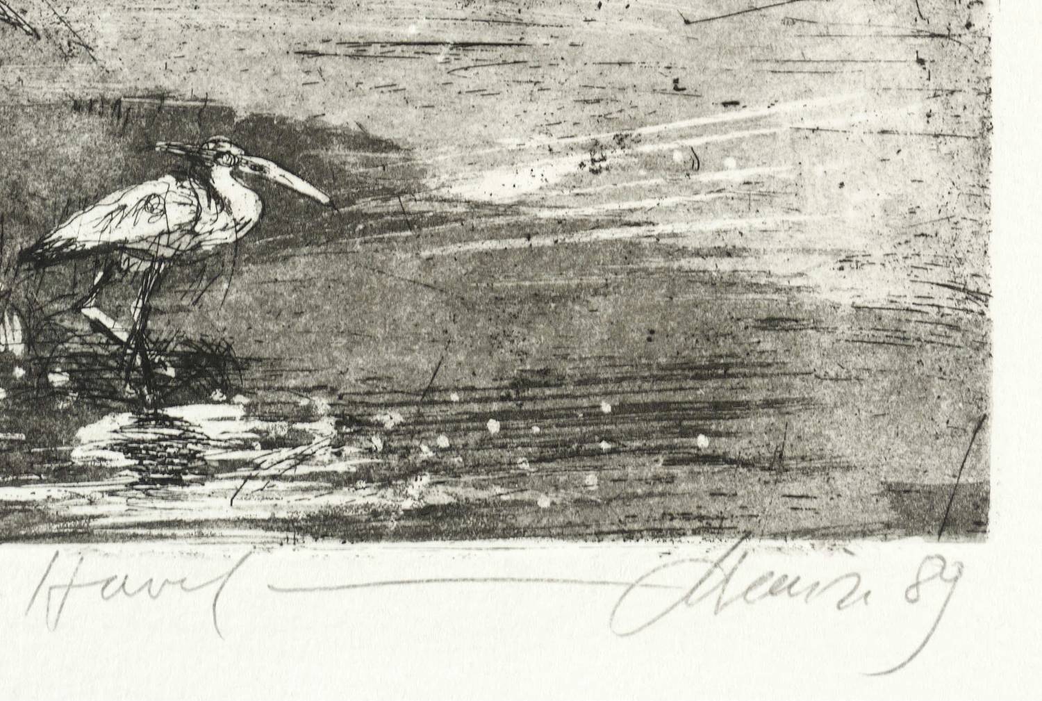 1989. Radierung / Aquatinta & Strichätzung, in Schwarz, auf hellem Büttenkarton. – Von Christian Heinze. – Vorzugsdruck. – 20,7 x 17,7 cm (Darstellung / Platte), 26 x 22 cm (Blatt).