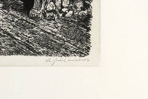 Andreas Paul Weber (1893 Arnstadt - 1980 Schretstaken / Mölln). Oft auch A. Paul Weber. Deutscher Lithograf, Zeichner und Grafiker. Schüler der Kunstgewerbeschule Erfurt. Erste autodidaktische Versuche in Lithografie. Im 1. Weltkrieg Soldat an der Ostfront. 1916 als Zeichner und Karikaturist bei der Zeitschrift der 10. Armee tätig und 1918 nach Spa versetzt. Gehörte dem nationalrevolutionären Kreis um Ernst Niekisch an. Wurde deshalb 1937 ein halbes Jahr inhaftiert. Zeichnete auch antisemitische Karikaturen. 1944/45 wieder Kriegsdienst. Nach 1945 in Schretstaken bei Mölln ansässig. 1971 Großes Verdienstkreuz und Ernennung zum Professor.