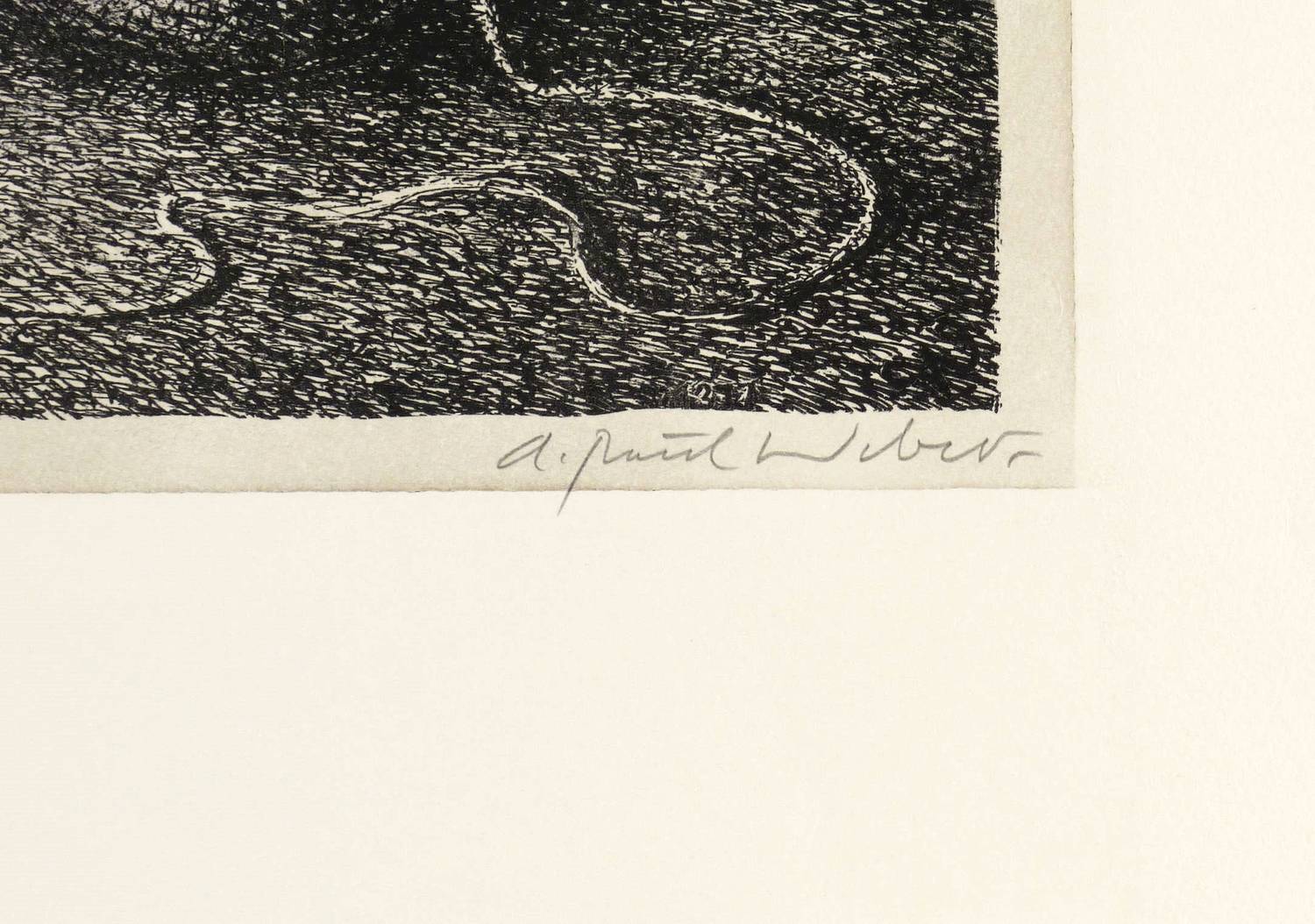 Arp 128. Dorsch 2653. – Rechts unten in Bleistift signiert: ″A. Paul Weber.″ Links unten Künstler- Stempel in Rot. Wasserzeichen mit Signet des Künstlers. – Tadelloser Zustand. Sehr gutes Exemplar.