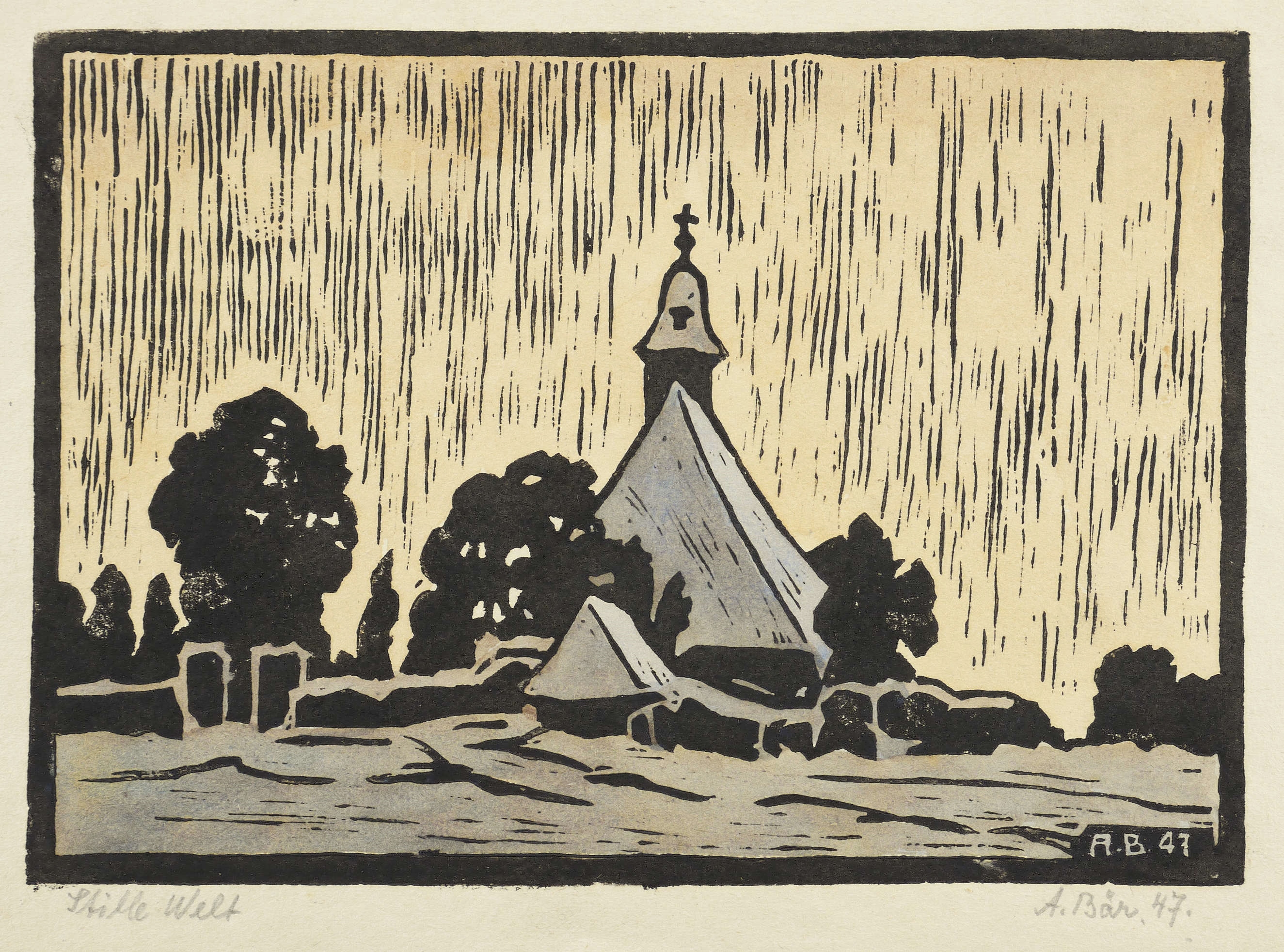 Rechts unten in Bleistift signiert und datiert: ″A. Bär 47.″ Links Titel. Im Druckstock rechts unten nochmals Signatur und Jahr. – Papier leicht gebräunt. Insgesamt guter Erhaltungszustand.