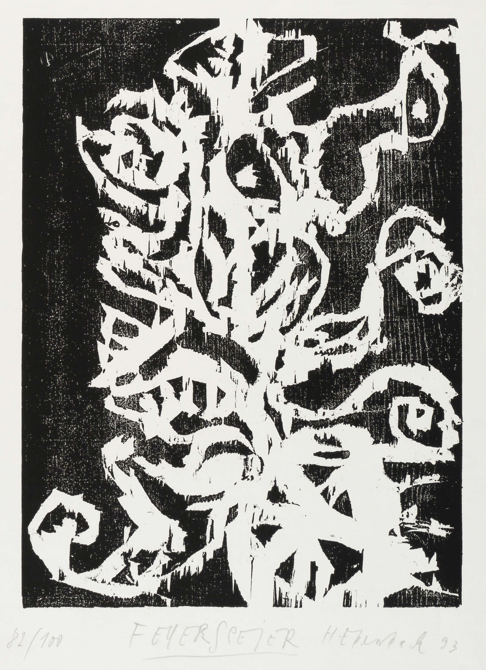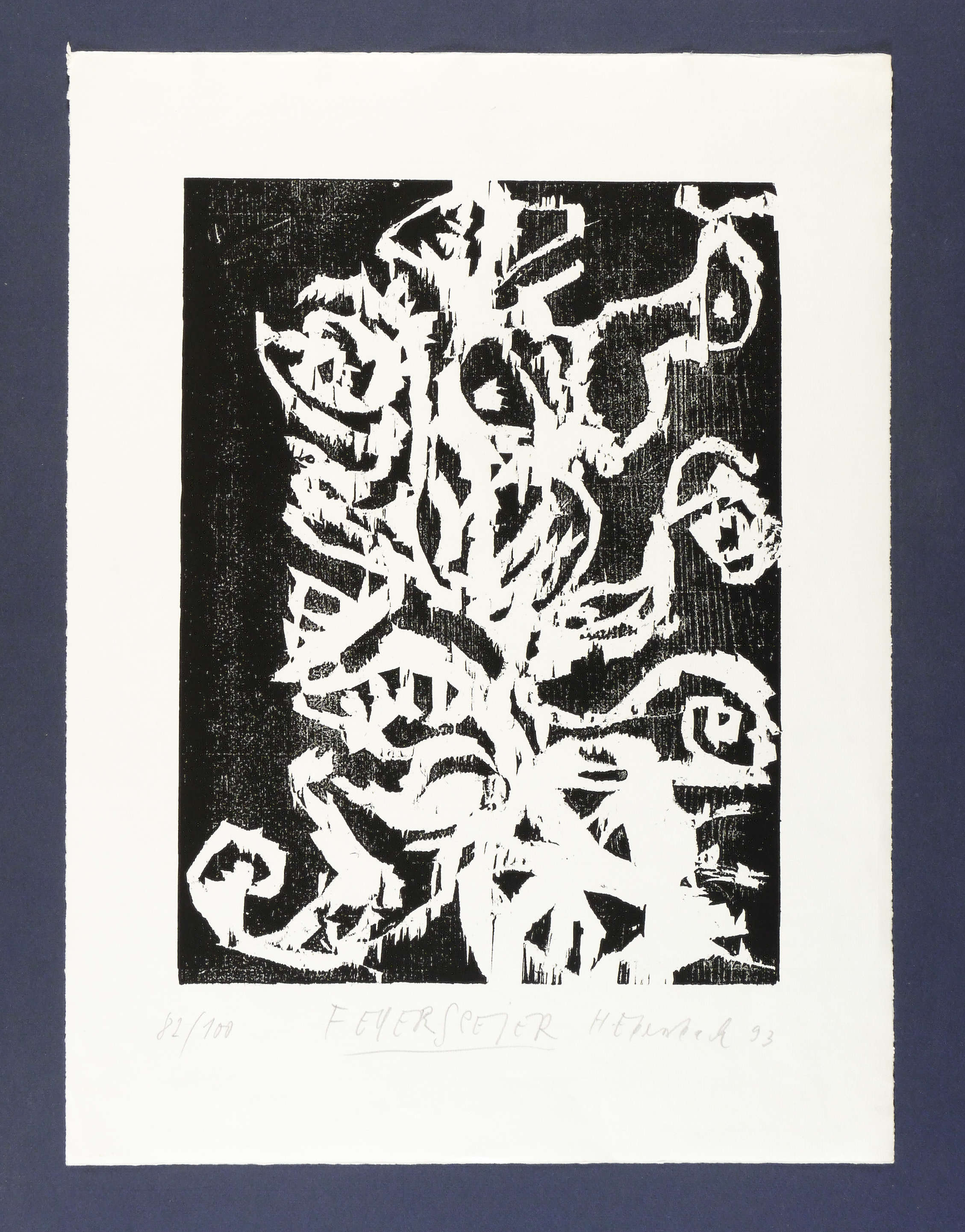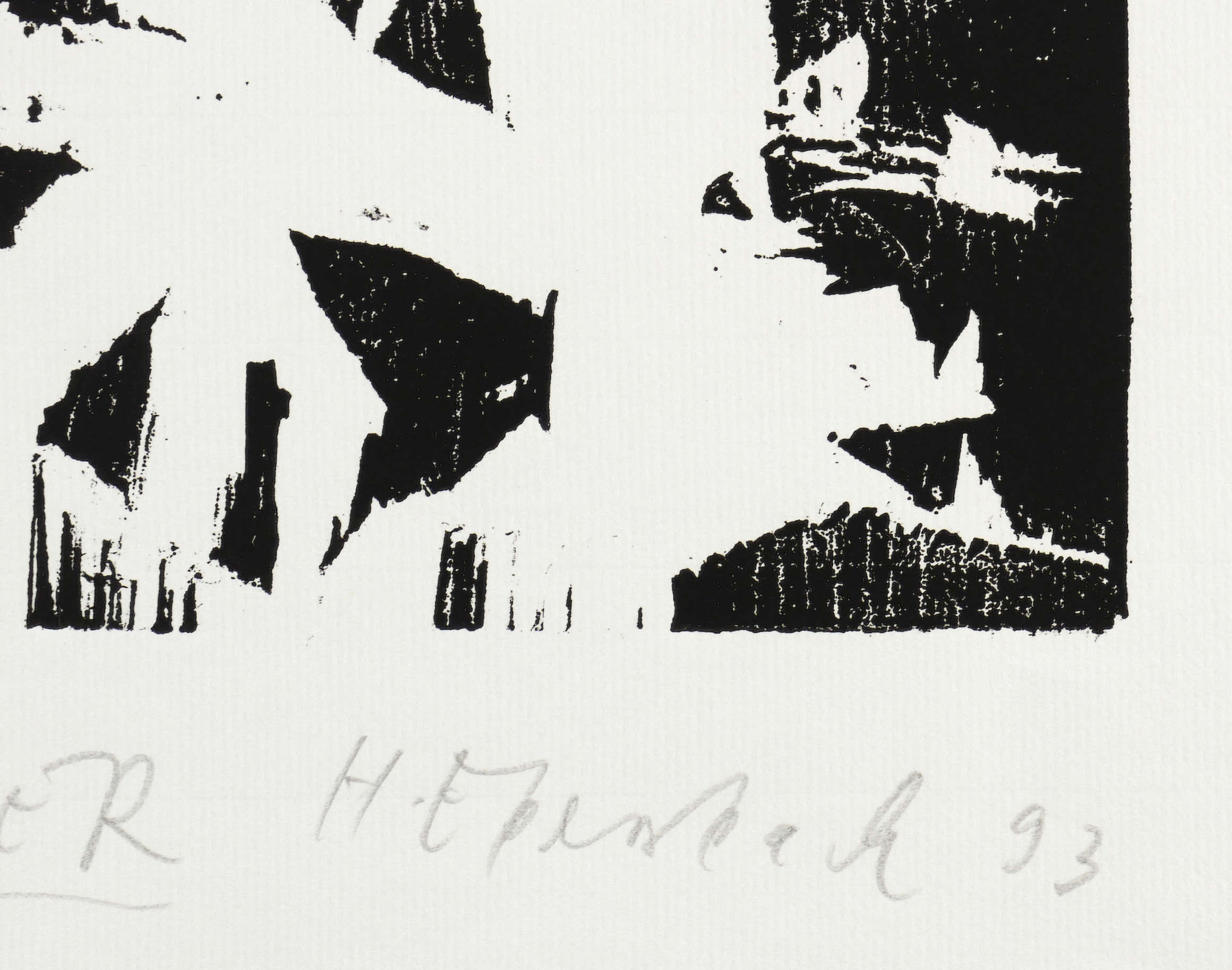 1993. Holzschnitt, in Schwarz, auf weißem Maschinenbütten. – Von Hartwig Ebersbach. – Auflage Exemplar Nr. 82/100. – 39,9 x 29,8 cm (Darstellung / Druckstock), 55 x 41 cm (Blatt).
