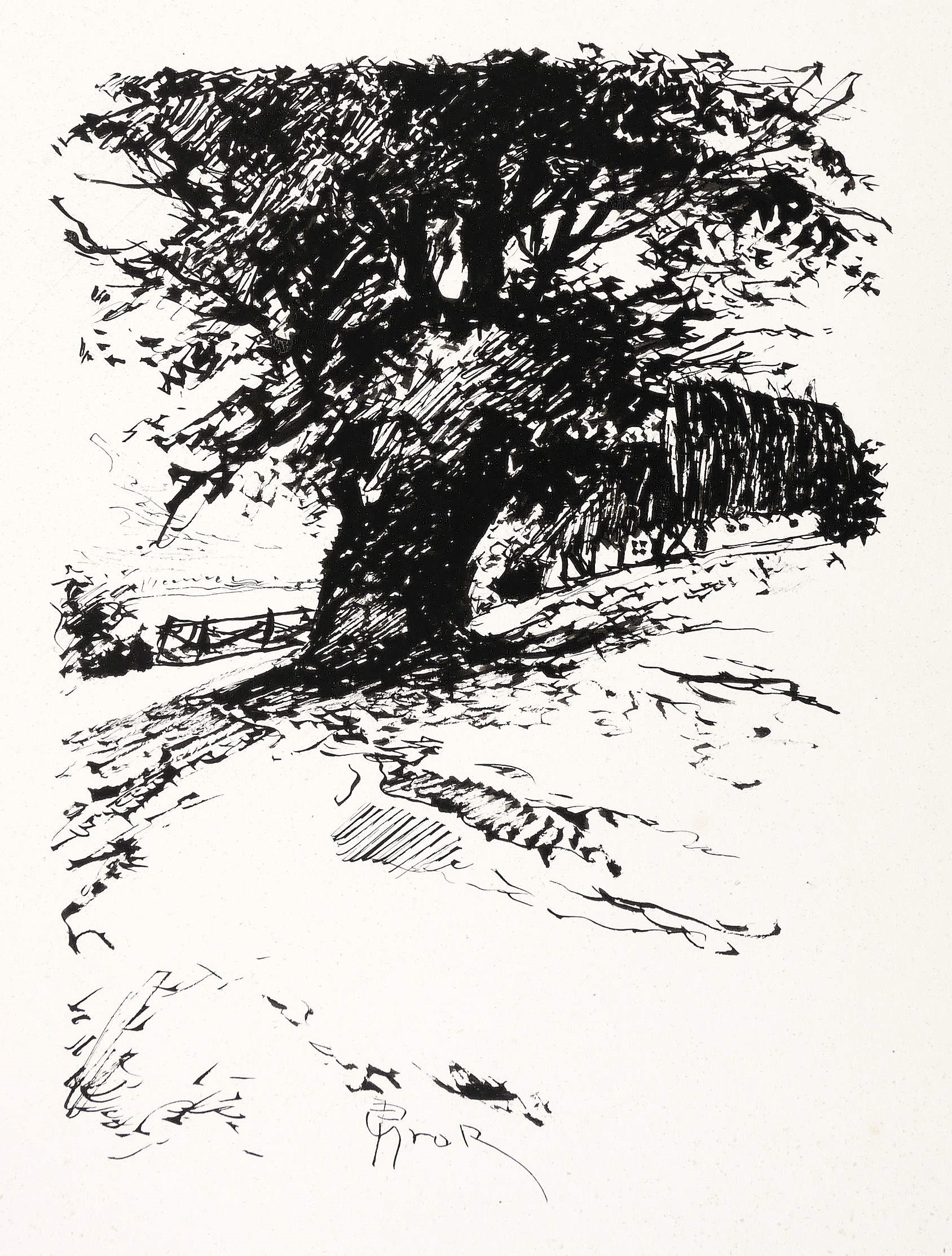 Unterhalb am Rand der Darstellung in Feder und Tusche signiert: ″PGroß″. – Aus einem teilweise datierten Zeichnungs- Konvolut, dass 1920 in verschiedenen Badeorten entlang der Ostseeküste entstand. – Unbeschnittenes Exemplar. Papier mit leichten kaum wahrnehmbaren Altersspuren. Verso am oberen Rand ältere Montagereste. Insgesamt sehr guter Zustand.