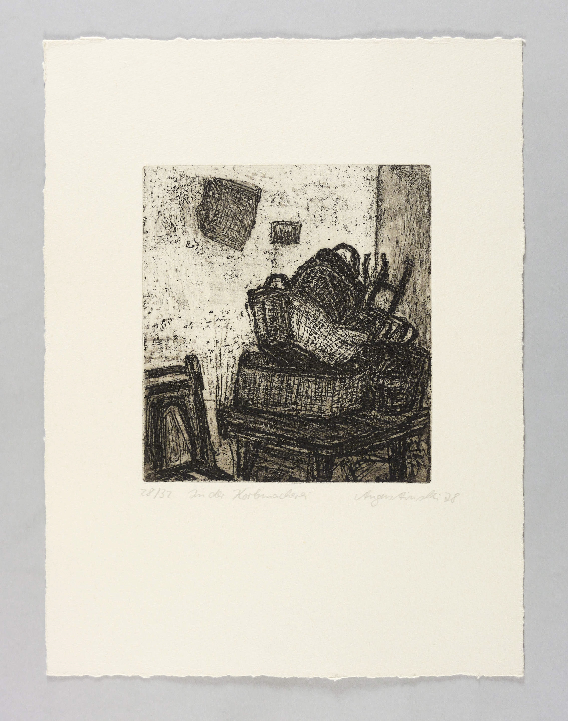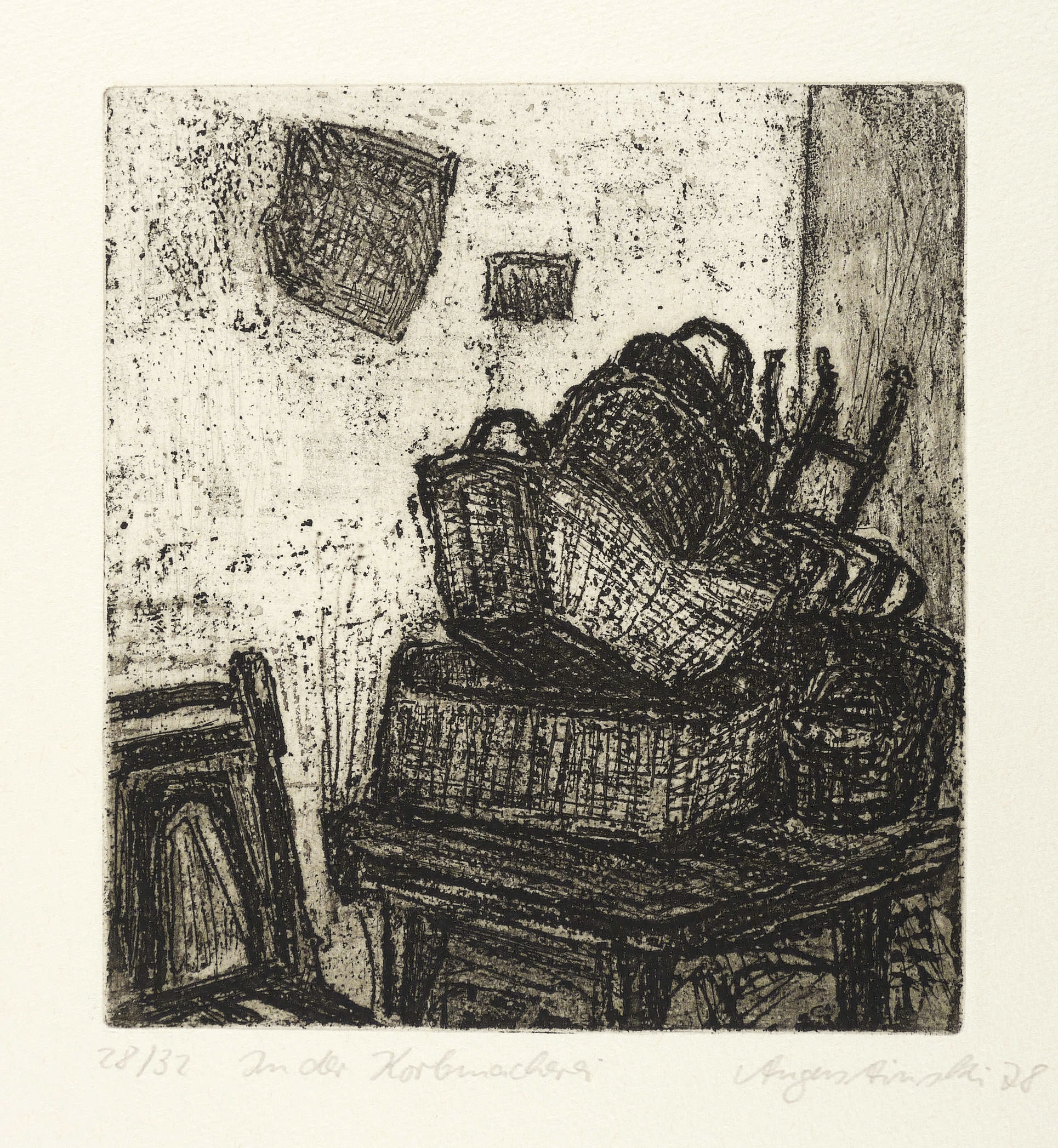1978. Radierung / Reservage, in Schwarzbraun, auf gelbem Büttenkarton. – Originale Künstlergrafik, von Michael Augustinski. – Auflage Exemplar Nr. 28/32. – 14,9 x 13,5 cm (Darstellung / Platte), 30 x 23 cm (Blatt).