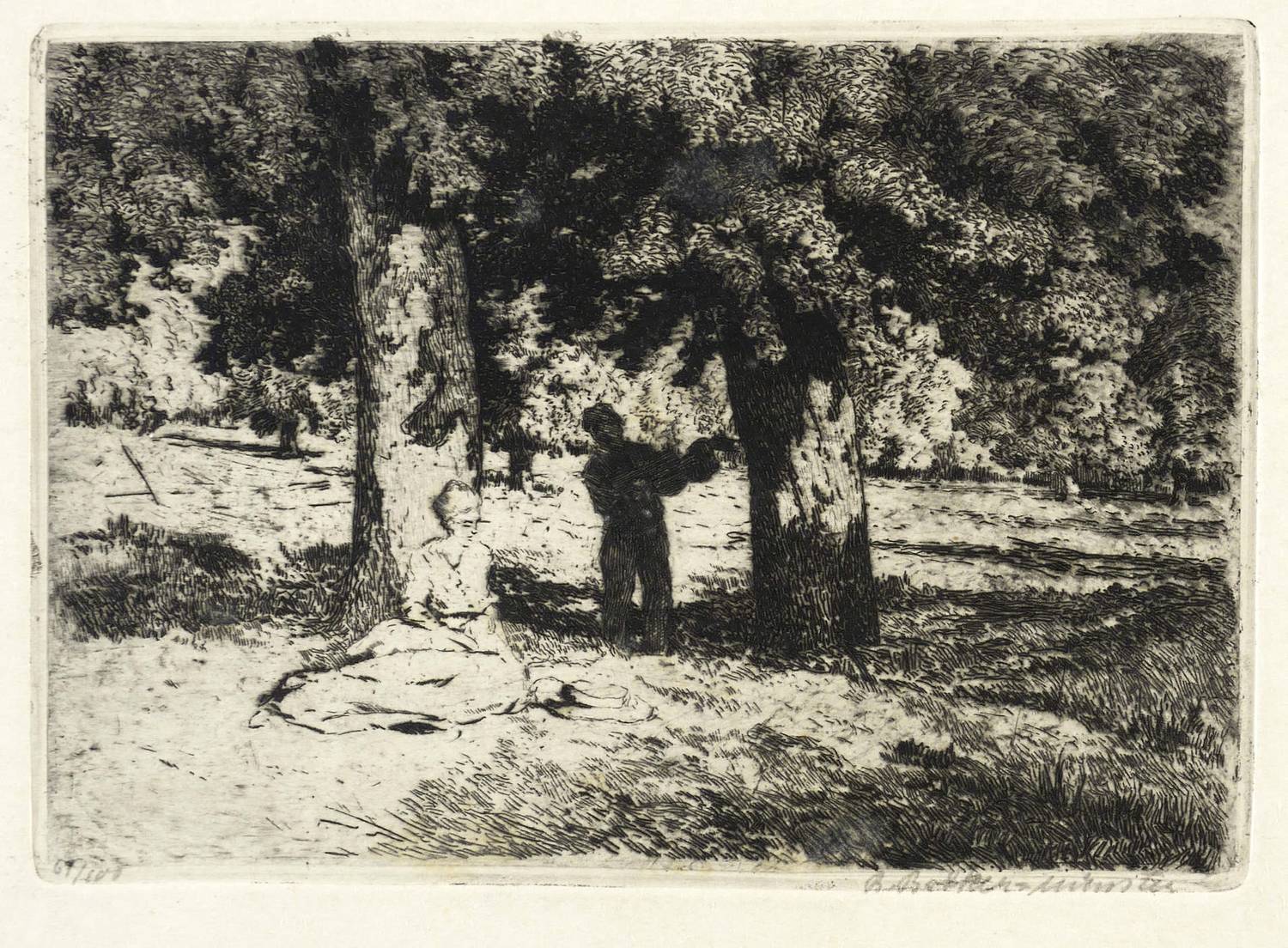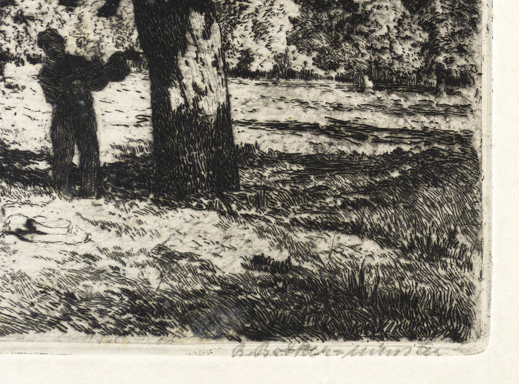 Um 1910. Radierung / Strichätzung & Kaltnadel, in Schwarz, auf gelblichem Kupferdruckkarton. – Originale Künstlergrafik, von Paul Behrens-Havemann. – Auflage Exemplar Nr. 64/100. – 11,9 x 16,8 cm (Darstellung / Platte), 25 x 35 cm (Blatt).