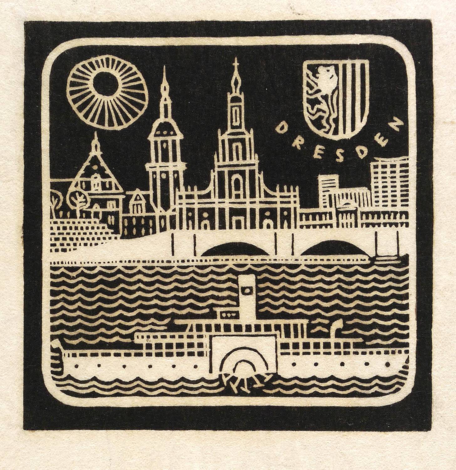 1930-1940. Cliché / Zinkätzung, in Schwarz, auf feinem gelblichem Similijapan. – Originale Künstlergrafik, von Dore Mönkemeyer-Corty. – 10,0 x 10,0 cm (Darstellung / Druckbild), 17 x 13 cm (Blatt), 23 x 18 cm (Passepartout).
