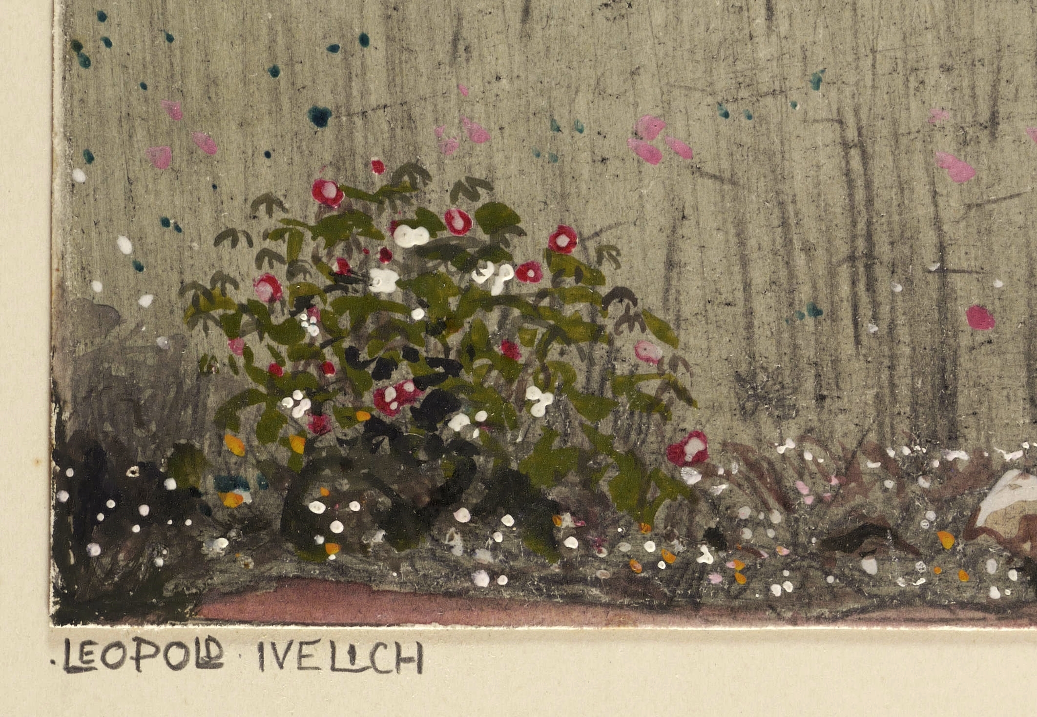 1908. Mischtechnik / Aquarell & Gouache, auf Zeichenkarton. – Originale Künstlergrafik, von Leopold Jülich. – Unikat. – 22,4 x 30,0 cm (Darstellung / Blatt), 30,5 x 37 cm (Trägerkarton).