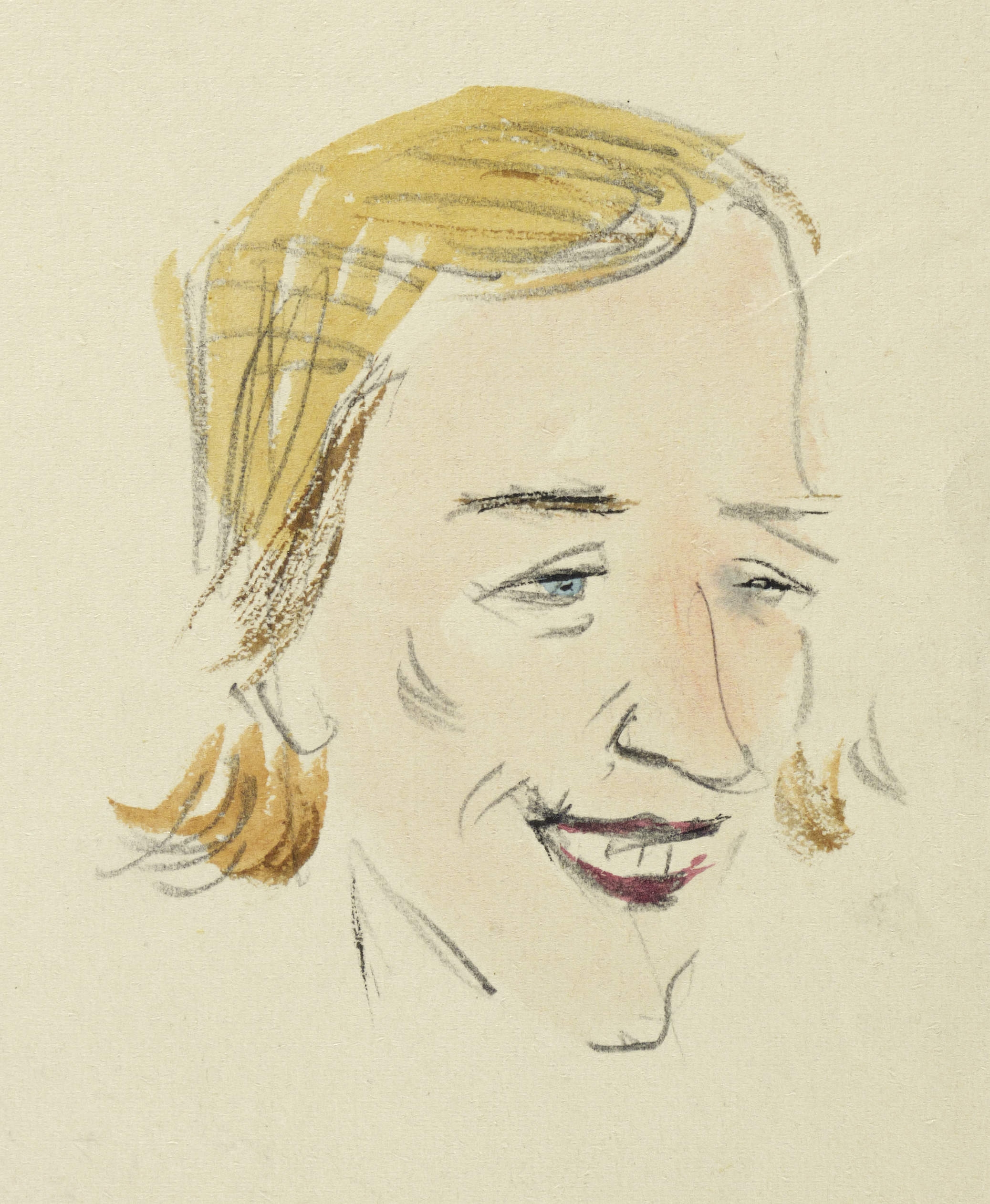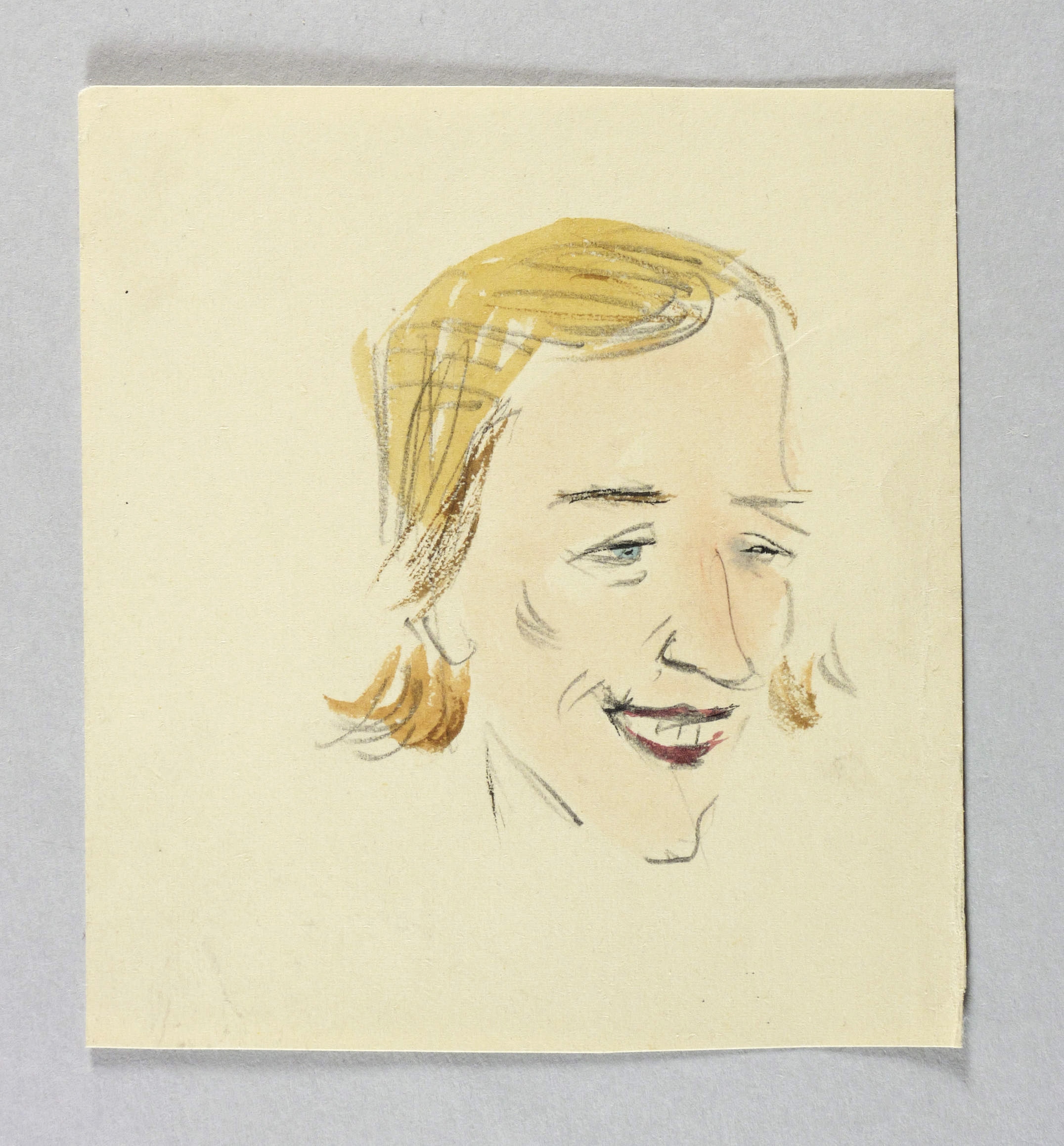 Um 1940. Zeichnung / Bleistiftzeichnung, aquarelliert, auf hellgelbem Velin. – Originale Künstlergrafik, von Erika Nestler. – Unikat. – 11,0 x 10,0 cm (Darstellung / Blatt).