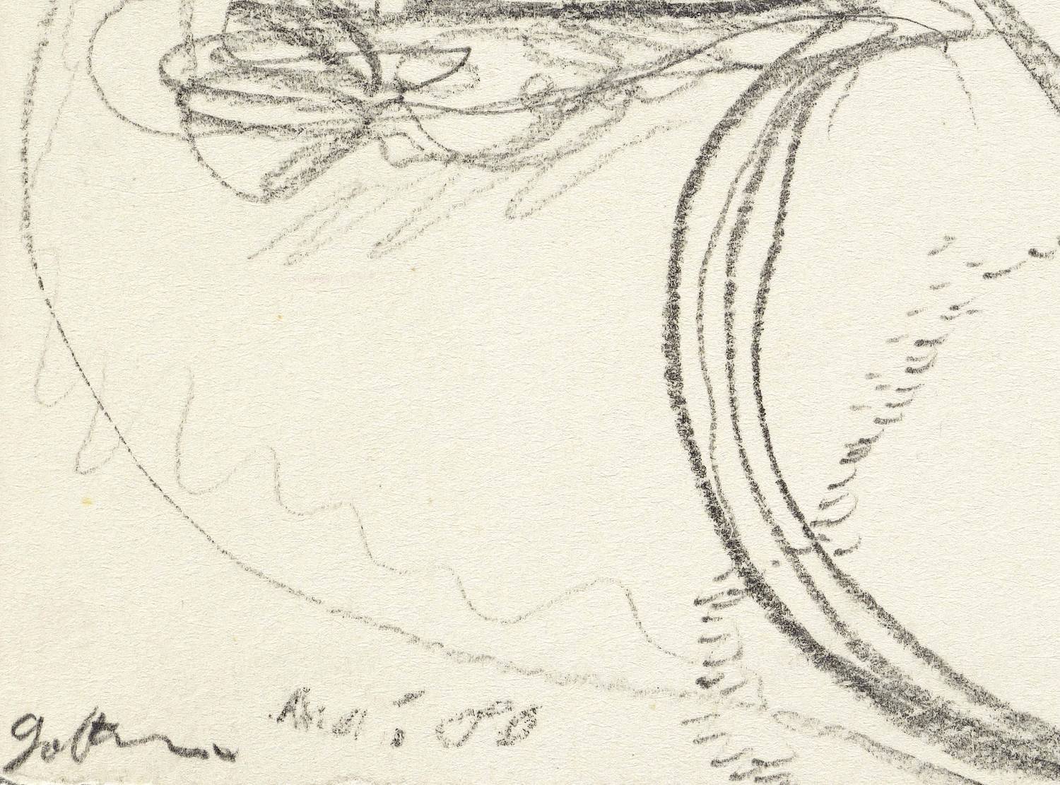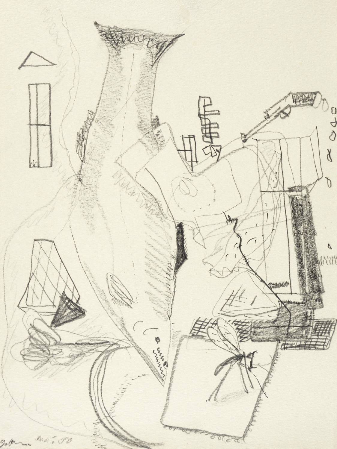 1980. Zeichnung / Bleistiftzeichnung, auf hellgelbem Karton. – Originale Künstlergrafik, von Dieter Goltzsche. – Unikat. – 27,0 x 19,5 cm (Darstellung / Blatt).