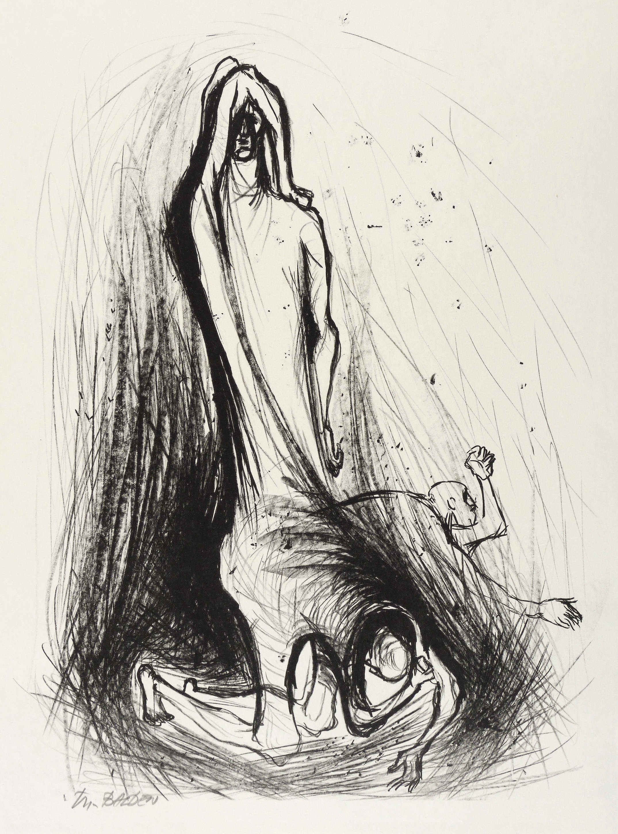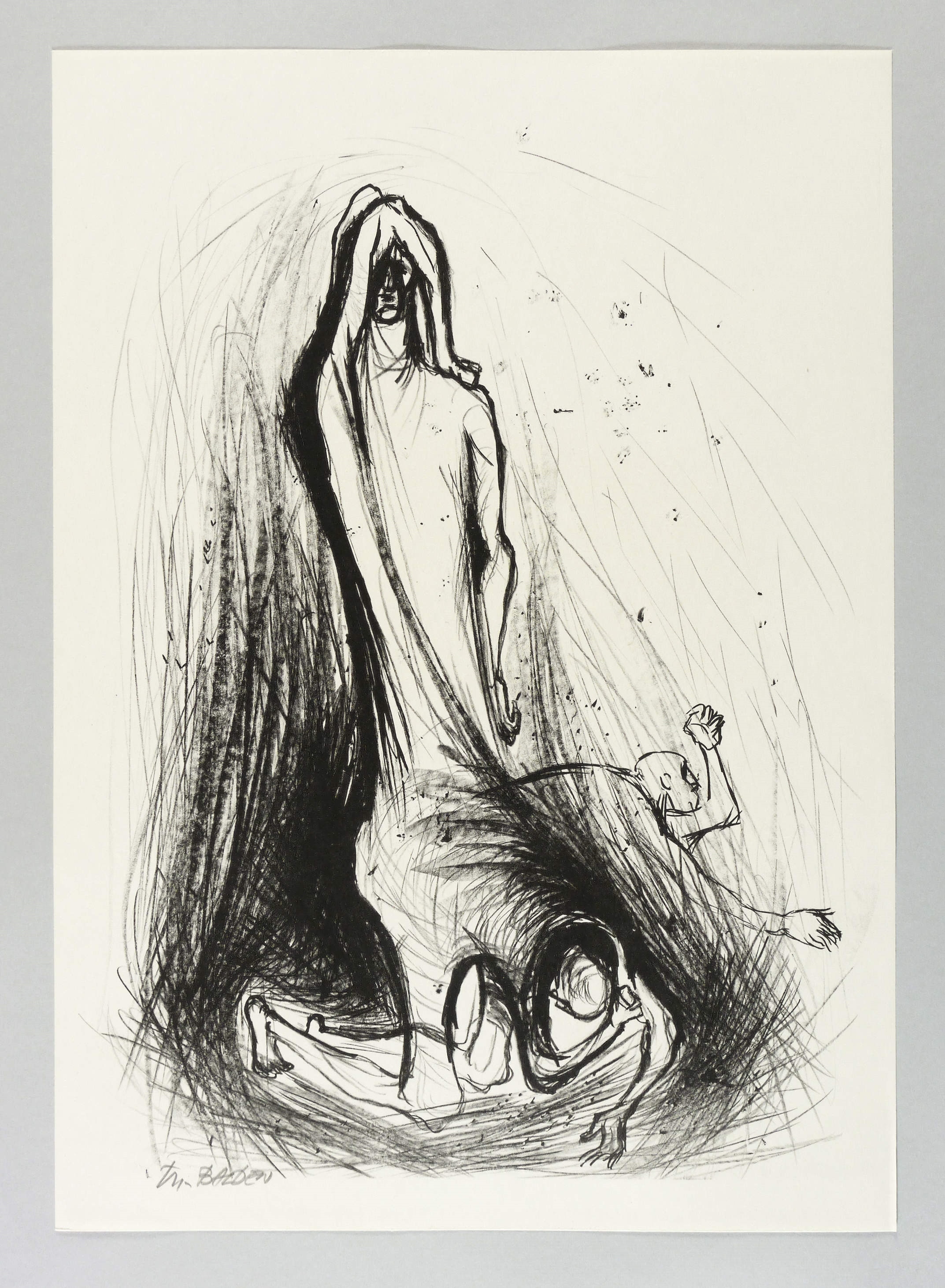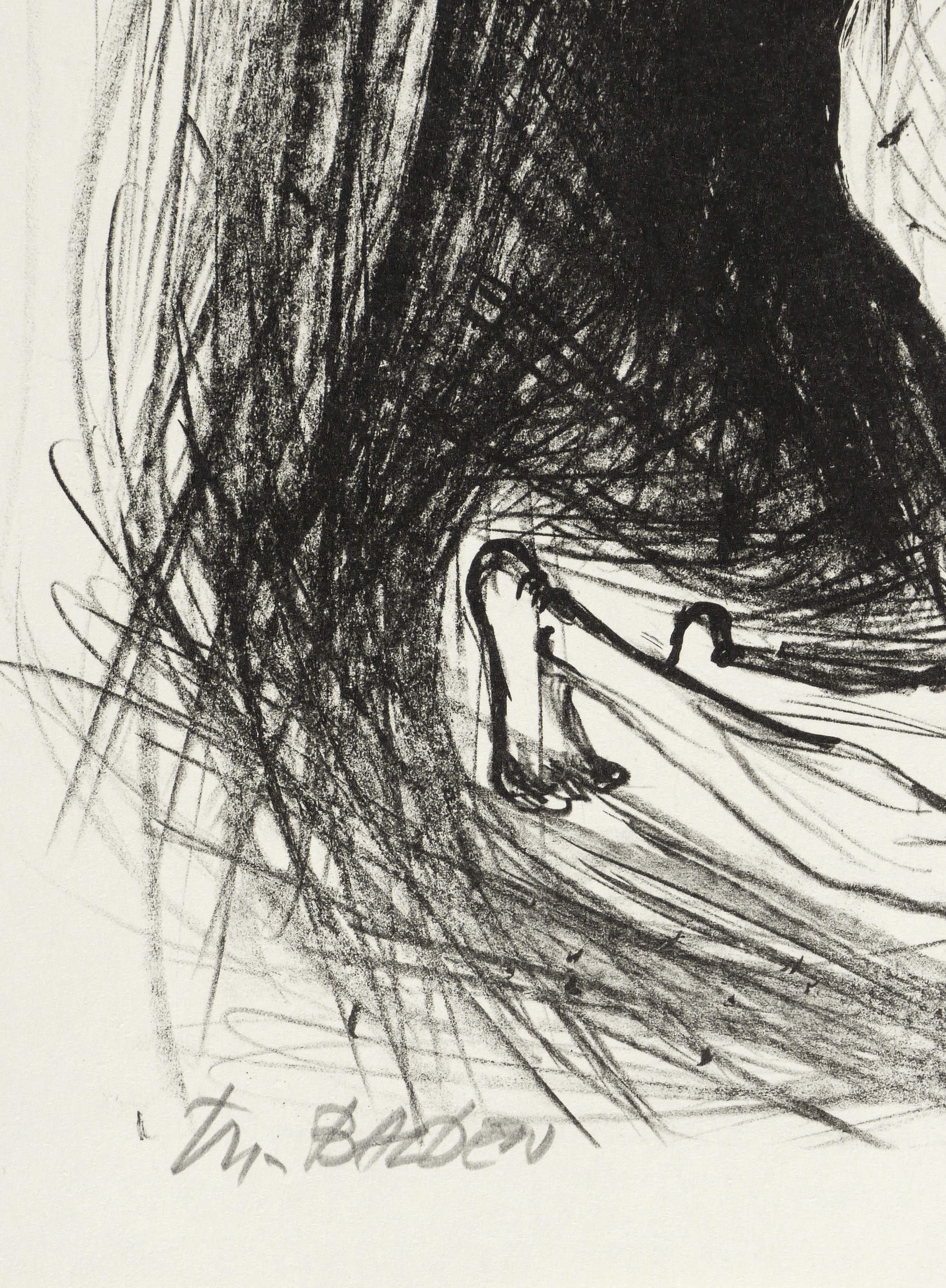 1972/1973. Lithografie / Kreidelithografie, in Schwarz, auf leichtem hellchamois Velin. – Originale Künstlergrafik, von Theo Balden. – 43,5 x 33,5 cm (Darstellung), 49 x 35 cm (Blatt).