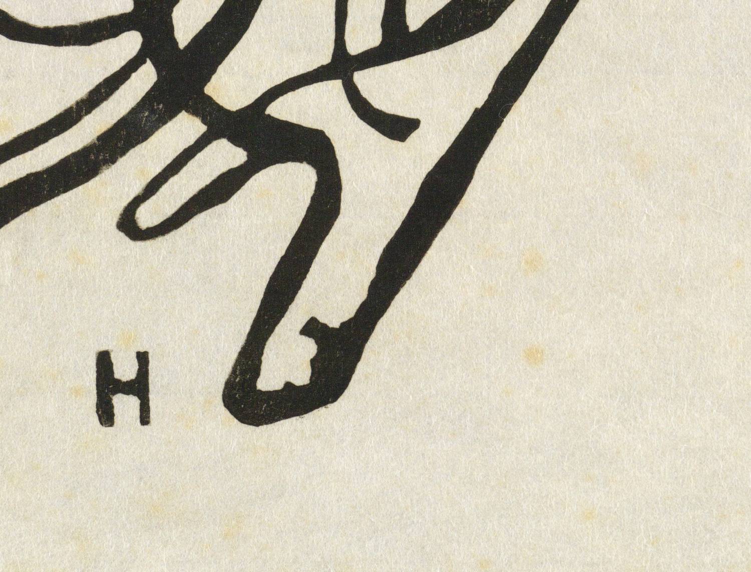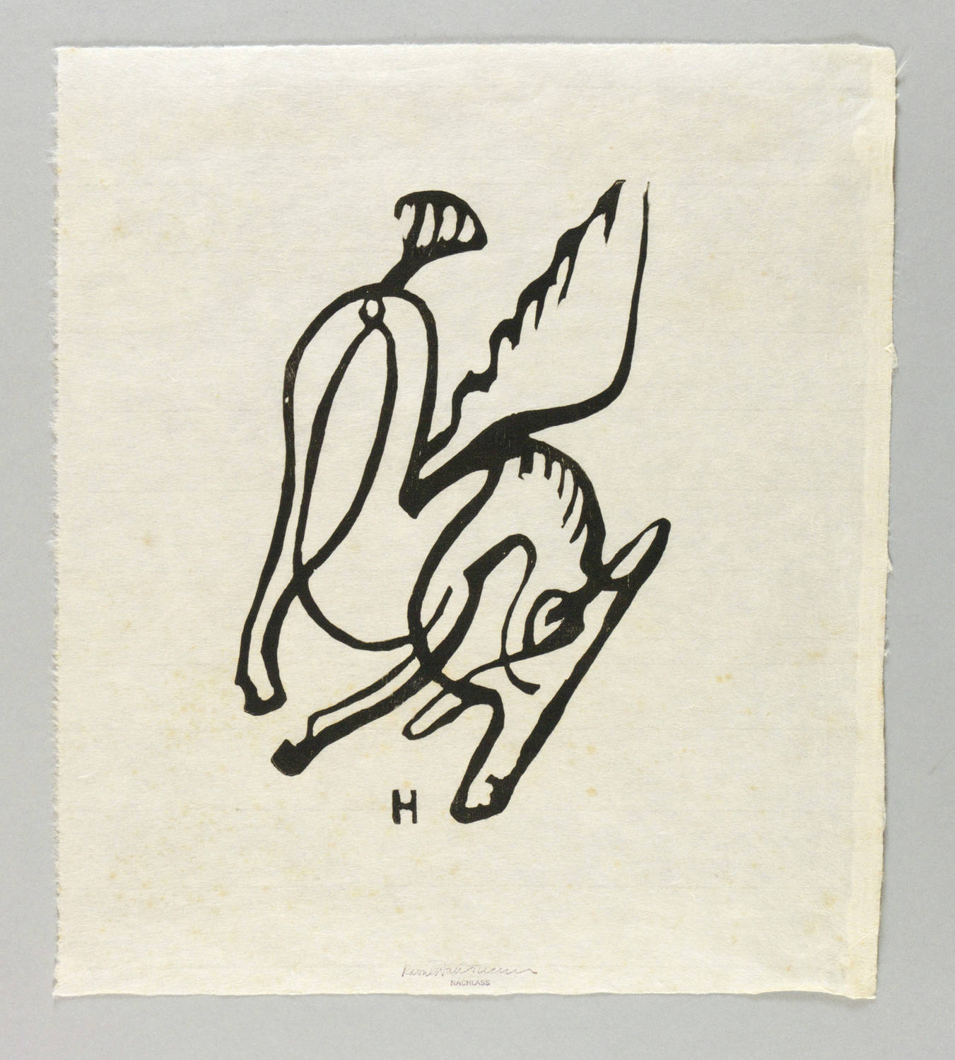 Nicht handsigniert. Im Druckstock links unten Künstler-Monogramm. Am unteren Rand Nachlass-Stempel. – Vom originalen Druckstock aus dem Nachlass für die Griffelkunst abgezogen (Wahl 231 A1). – Originalrandiges Exemplar. Papier durchgehend stockfleckig. Deshalb nur mangelhafter bis mäßig guter Zustand.