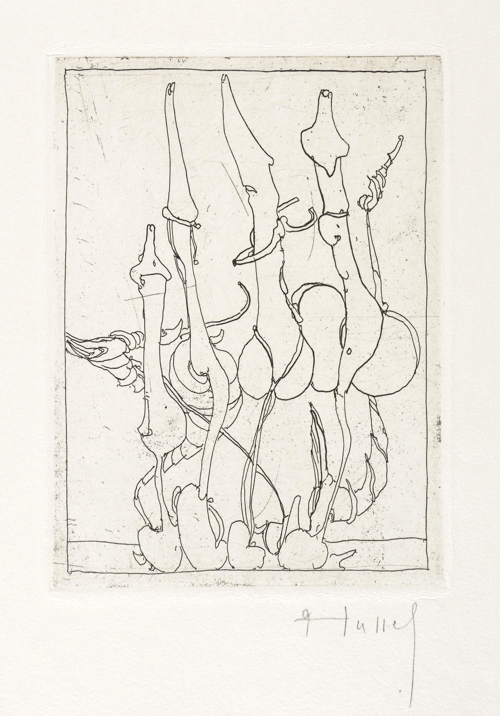 1991. Radierung / Strichätzung, in Schwarz, auf Velin. – Originale Künstlergrafik, von Horst Hussel. – 13,9 x 10,1 cm (Darstellung / Platte), 27 x 19 cm (Blatt).