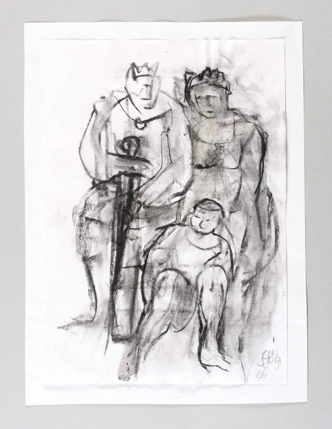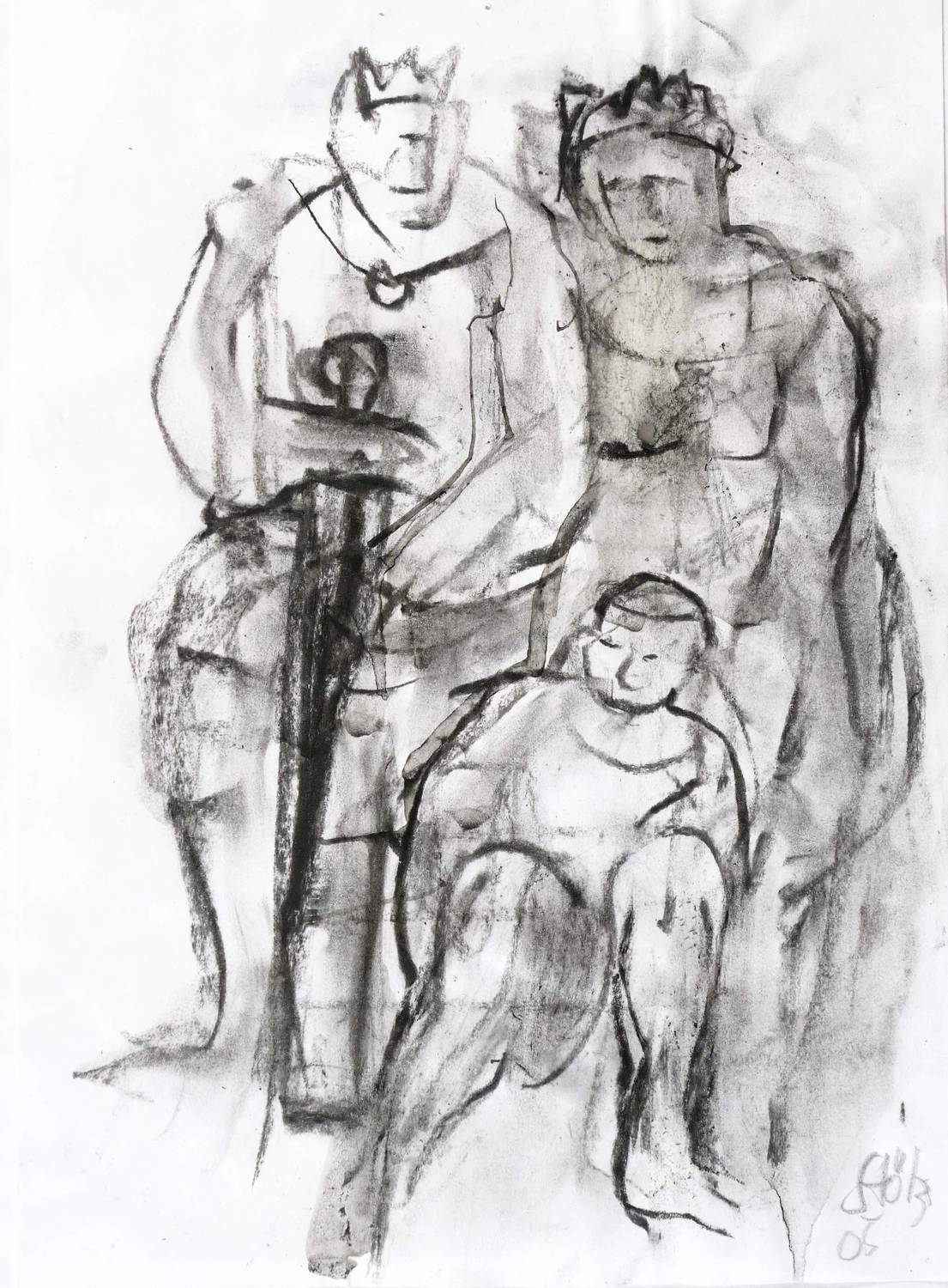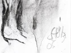2005. Zeichnung / Kohlezeichnung, in Pinsel & Tusche überarbeitet, auf weißem Papier. – Originale Künstlergrafik, von Werner Stötzer. – Unikat. – 29,6 x 20,9 cm (Darstellung / Blatt), 33 x 24 cm (Trägerblatt).