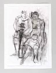 Rechts unten in Bleistift signiert und datiert: ″Stötzer 05″. – Illustration zur mythologischen Erzählung ″Das goldene Vlies″ von Christoph Hein. Die Zeichnung entstand zur Erstauflage der Erzählung bei Faber & Faber (Leipzig 2005). – Blatt original vom Künstler auf Trägerpapier aufgesetzt. In der Darstellung kleines Löchlein aus dem Herstellungsprozess. Guter Zustand.