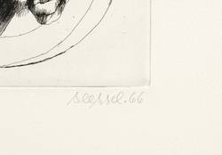 1966. Radierung / Strichätzung, in Schwarz, auf hellchamois Velinkarton. – Originale Künstlergrafik, von Wolf Seesselberg. – 20,7 x 19,7 cm (Darstellung / Platte), 45 x 34 cm (Blatt).