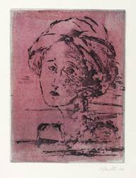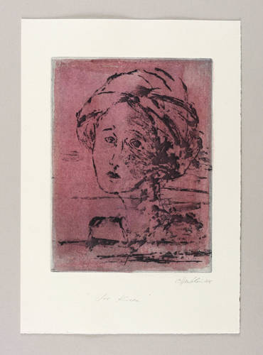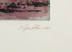 2015. Farbradierung / Vernis mou, in Rot & Schwarz, auf hellchamois Velin. – Von Madeleine Heublein. – Probedruck. – 19,7 x 15,0 cm (Darstellung / Platte), 29 x 21 cm (Blatt).