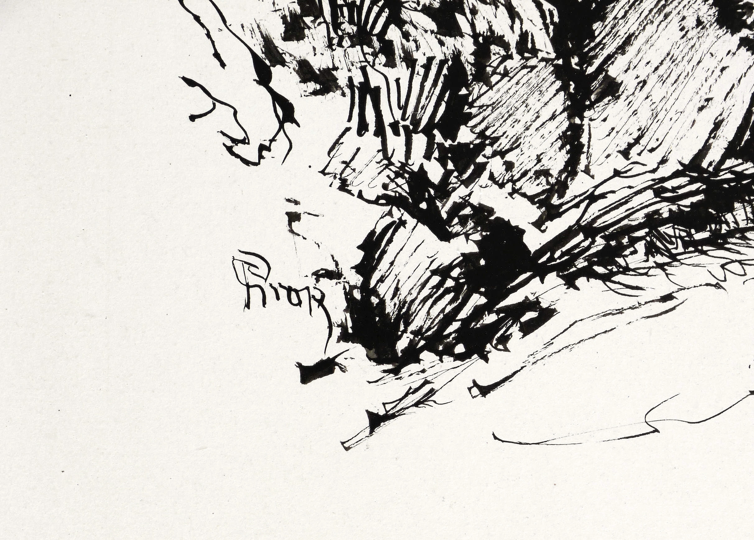 1920. Zeichnung / Federzeichnung, in schwarzer Tusche, auf glattem weißem Karton. – Originale Künstlergrafik, von Paul Groß. – Unikat. – 22,7 x 15,9 cm (Darstellung), 35 x 24 cm (Blatt).