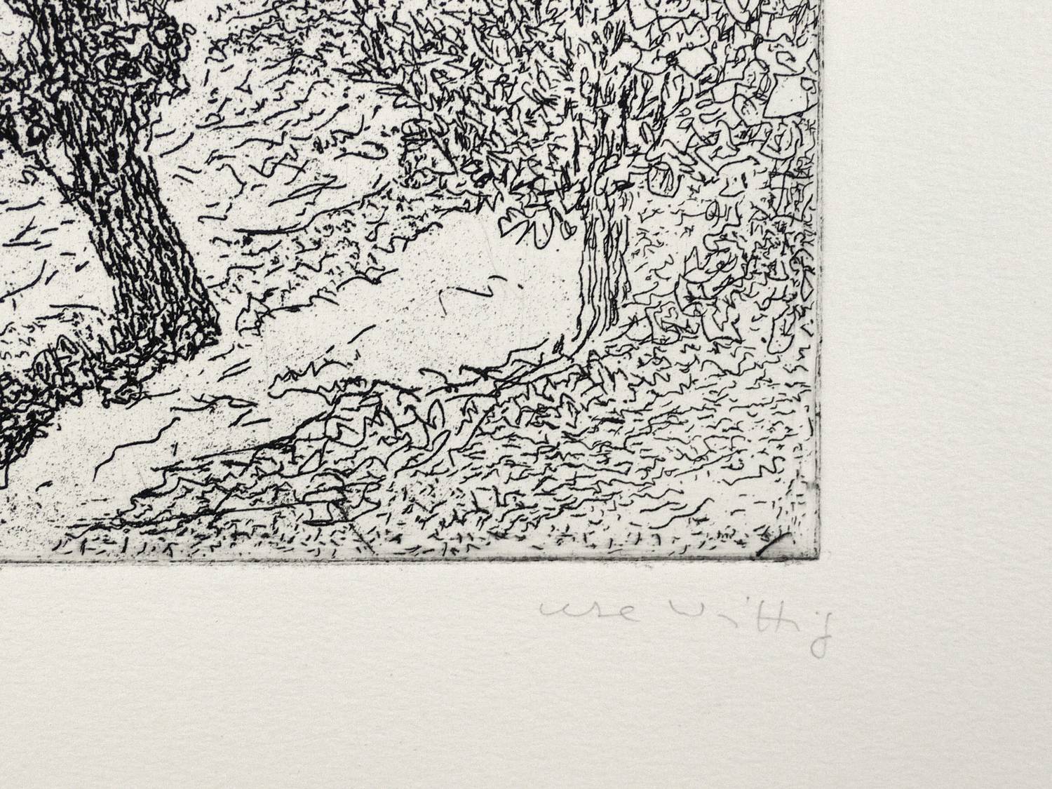 Um 1988. Radierung / Strichätzung, in Schwarz, auf hellchamois Hahnemühle. – Originale Künstlergrafik, von Ute Wittig. – 30,5 x 25,0 cm (Darstellung / Platte), 54 x 40 cm (Blatt).