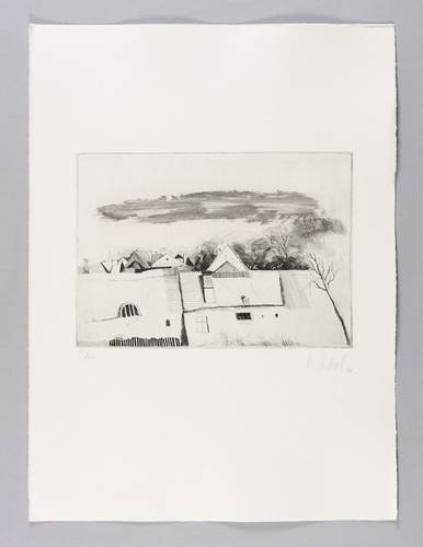 1975. Radierung / Strichätzung & Aquatinta, mit zartem Plattenton, in Schwarz, auf schwerem Hahnemühle-Bütten. – Von Karl Korab. – Auflage Exemplar Nr. 53/100. – 21,1 x 29,8 cm (Darstellung / Platte), 54 x 40 cm (Blatt).