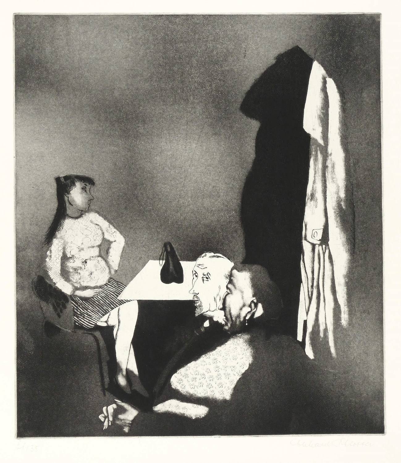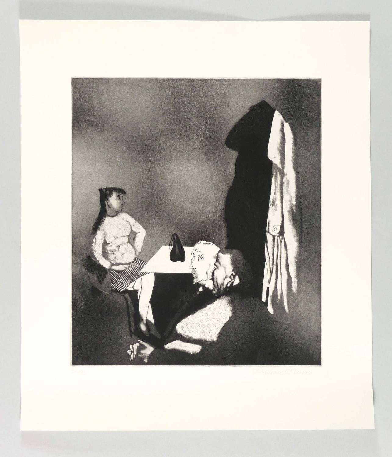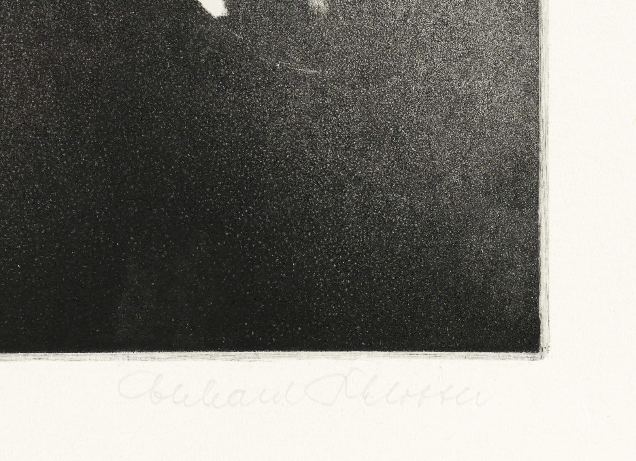 1963. Radierung / Aquatinta & Strichätzung, in Schwarz, auf hellchamois Velinkarton. – Originale Künstlergrafik, von Eberhard Schlotter. – Exemplar Auflage Nr. 21/35. – 39,8 x 34,6 cm (Darstellung / Platte), 56 x 49 cm (Blatt).
