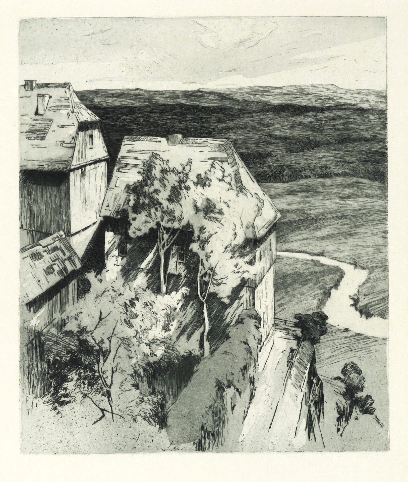 Graepler 19. – Aus: Pan (Berlin: Fontane 1897/1898), Bd. 3. – Links unten typografisch bezeichnet: "OTTO UBBELOHDE, MOTIV AUS HESSEN / ORIGINALRADIERUNG". – Schöner gratiger Abzug. – Sehr guter Zustand.