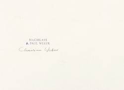 Andreas Paul Weber (1893 Arnstadt - 1980 Schretstaken / Mölln). Oft auch A. Paul Weber. Deutscher Lithograf, Zeichner und Grafiker. Schüler der Kunstgewerbeschule Erfurt. Erste autodidaktische Versuche in Lithografie. Im 1. Weltkrieg Soldat an der Ostfront. 1916 als Zeichner und Karikaturist bei der Zeitschrift der 10. Armee tätig und 1918 nach Spa versetzt. Gehörte dem nationalrevolutionären Kreis um Ernst Niekisch an. Wurde deshalb 1937 ein halbes Jahr inhaftiert. Zeichnete auch antisemitische Karikaturen. 1944/45 wieder Kriegsdienst. Nach 1945 in Schretstaken bei Mölln ansässig. 1971 Großes Verdienstkreuz und Ernennung zum Professor.