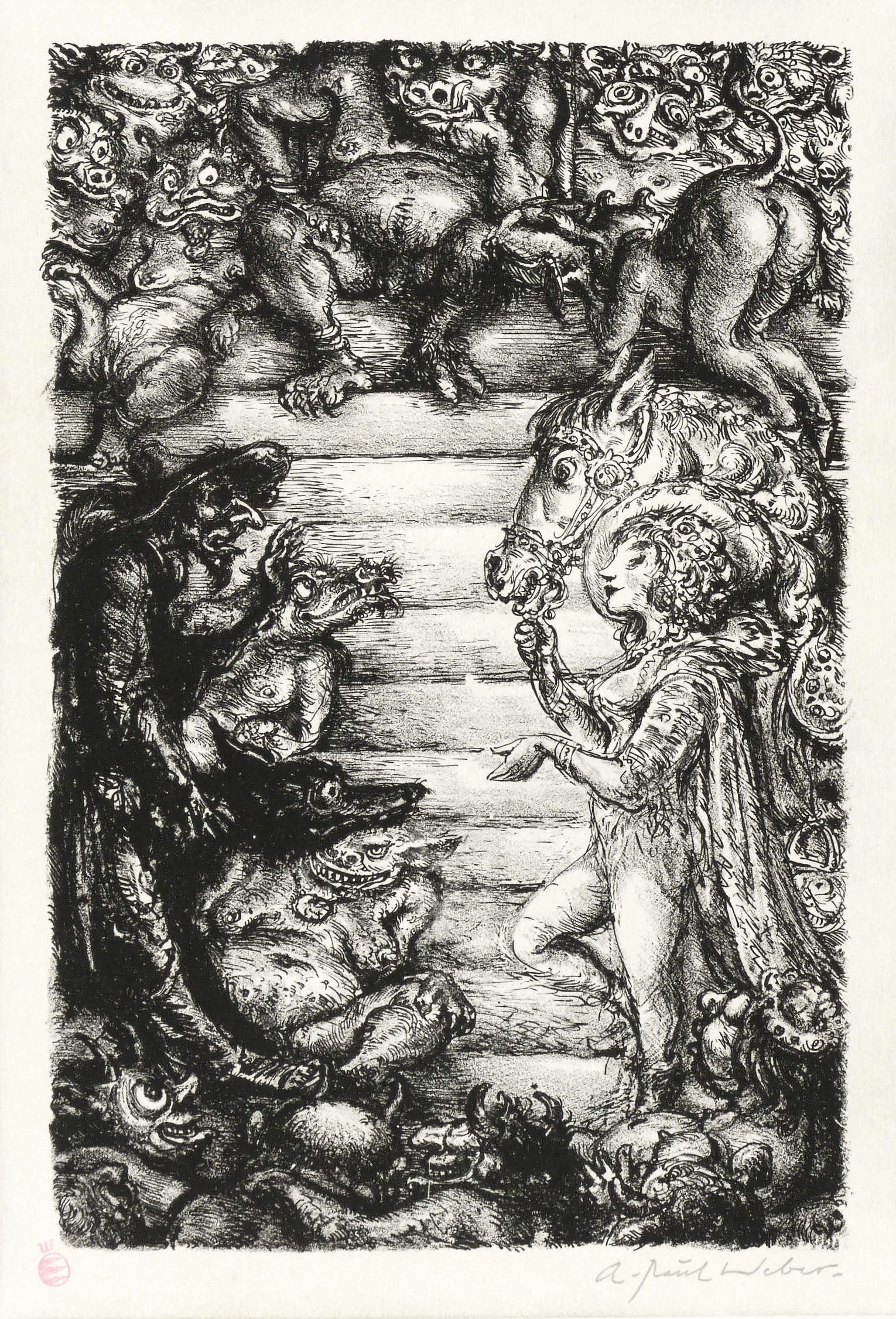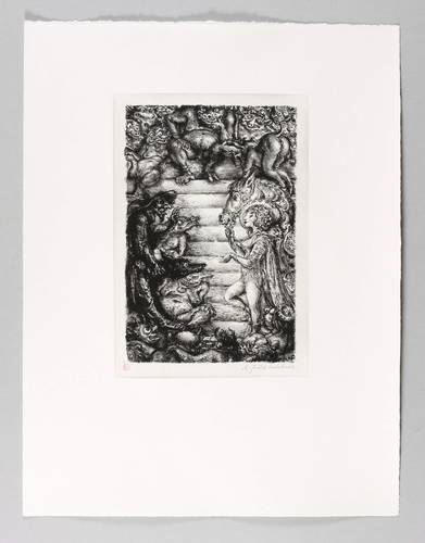 1969/1984. Lithografie / Kreide- & Federlithografie, in Schwarz, über Tonplatte, auf weißem Zerkall-Bütten. – Originale Künstlergrafik, von Andreas Paul Weber. – 26,3 x 17,4 cm (Darstellung), 29,1 x 19,8 cm (Tonplatte), 51 x 39 cm (Blatt).