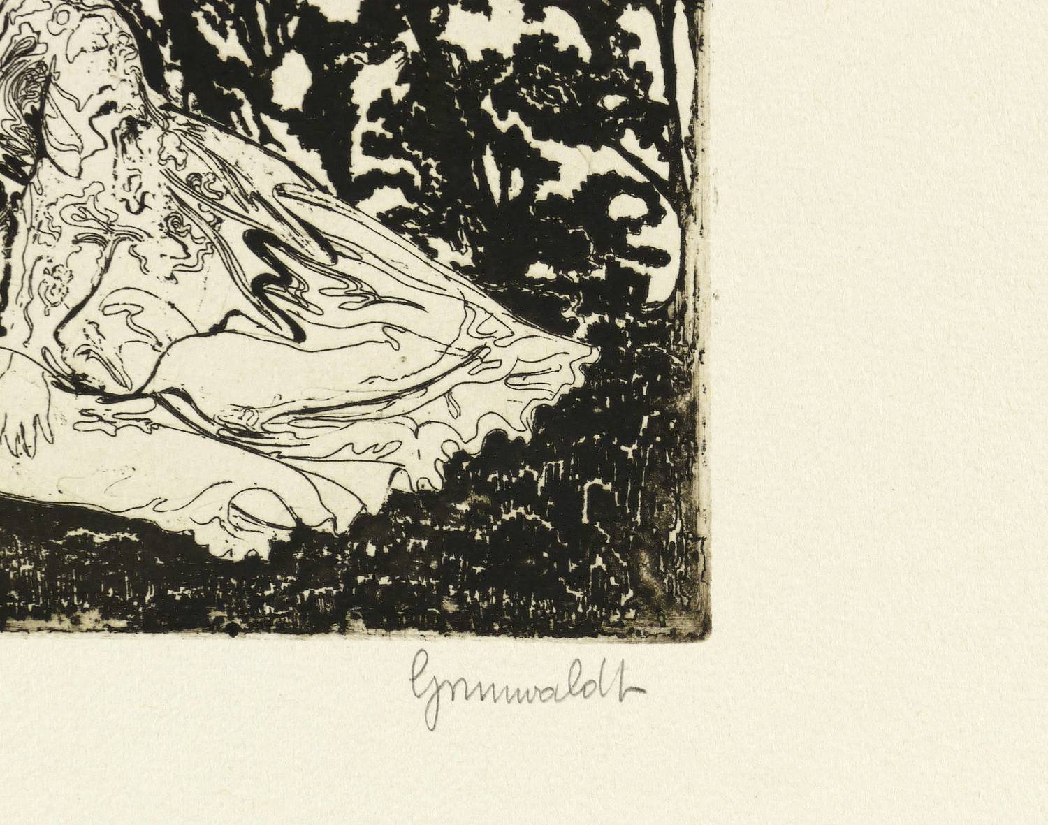 Rechts unten in Bleistift signiert. In der Platte links unten Monogramm und Jahr. – Originalrandiges Exemplar. Ohne Mangel. Sehr guter Zustand.