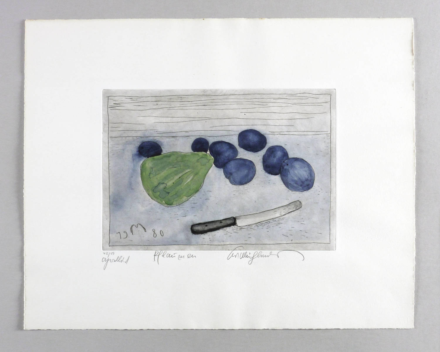 Rechts unten in Bleistift signiert: ″Curt Mühlenhaupt″. Links Auflagenbezeichnung: ″45/50″. Dazu bezeichnet: ″aquarelliert / Citronen″. In der Platte links unten zusätzlich Monogramm und Jahr. – Originalrandiges Exemplar. Sehr guter Zustand.