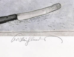 1980. Radierung / Strichätzung, aquarelliert, auf hellgelbem Velin. – Originale Künstlergrafik, von Kurt Mühlenhaupt. – Auflage Exemplar Nr. 45/50. – 20,8 x 29,8 cm (Darstellung / Platte), 40 x 50 cm (Blatt).