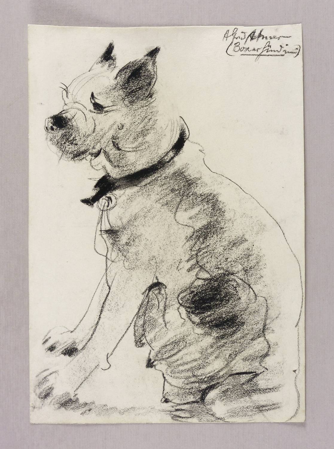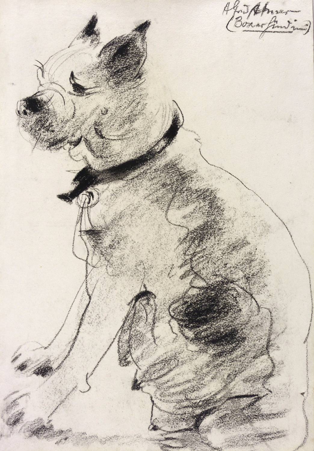 Links oben in kreide signiert: ″Alfred Ahner″. Dazu bezeichnet: ″ (Boxerhündin)″. – Provenienz: Sammlung Erhard Frommhold, Dresden. – Unauffälliges kleines Löchlein im Papier rechts unten. Insgesamt guter Zustand.