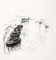 1920. Zeichnung / Federzeichnung, in schwarzer Tusche, auf glattem weißem Karton. – Originale Künstlergrafik, von Paul Groß. – Unikat. – 16,4 x 19,0 cm (Darstellung), 35 x 24 cm (Blatt).