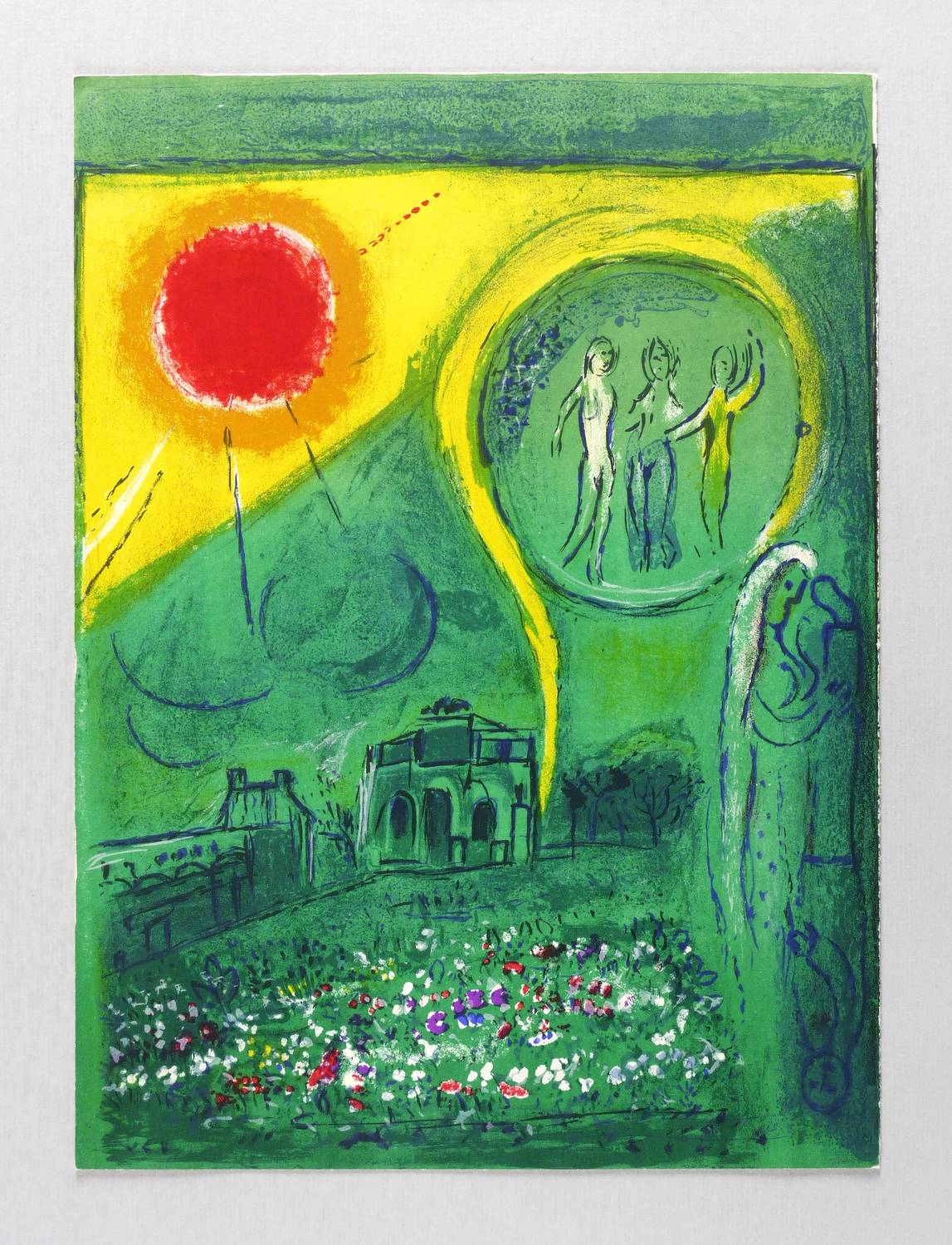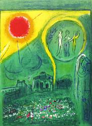 1954. Farblithografie / Pinsellithografie, in 9 Farben, auf glattem hellchamois Velin. – Originale Künstlergrafik, von Marc Chagall. – Auflage 2500 Exemplare. – 38,3 x 28,2 cm (Darstellung / Blatt).