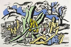 Fernand Léger (1881 Argentan - 1955 Gif-sur-Yvette bei Paris). Französischer Maler, Bildhauer und Grafiker. 1897-99 Architekturlehre in Caen. Ab 1900 in Paris als Architekturzeichner tätig. 1902/03 Militärdienst. 1903/04 Schüler an der École des Arts Décoratifs und der Académie Julian in Paris. Nach impressionistischen Anfängen geriet er unter den Einfluss des Kubismus von Pablo Picasso und Georges Braque. 1910 entdeckte ihn Daniel-Henry Kahnweiler, es folgten Ausstellungen in der Galerie Kahnweiler. Ab 1908 mit Henri Laurens, Marc Chagall, Guillaume Apollinaire in der Pariser Künstlerkolonie "La Ruche". 1914-17 als Soldat im 1. Weltkrieg schwer verwundet. Danach Beginn seiner "période mécanique". 1924 entstand dazu sein Experimentalfilm "Le ballet mécanique". 1939 Emigration in die Vereinigten Staaten. 1945 Rückkehr nach Paris. Es entstanden einige Monumentalwerke, u.a. zur Gestaltung des UNO-Gebäudes in New York, der Kirchen von Passy (Département Haute-Savoie) und Audincourt (Département Doubs). 1955 Malerpreis der Biennale von São Paulo. 1955, '59 und '64 postume Beteiligung an der documenta I-III in Kassel. Während sein Frühwerk dem Kubismus zugeordnet werden kann, beeinflusste er mit seinem Spätwerk die amerikanischen Maler der Pop Art wie Roy Lichtenstein.
