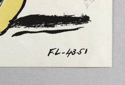 Saphire E 14. – Aus: Verve (Paris: E. Tériade 1952), Bd. 27/28. – Nicht handsigniert. Im Stein rechts unten signiert und datiert: ″F.L. - 4.3.51″. – Druck im Atelier Mourlot Freres, Paris. Verlag bei Editions Tériade, Paris. Originalgrafische Beilage des Kunstmagazins ″Verve″ 1952. - Verso zwei weitere einfarbige Lithografien mit surreal-abstrakten Pflanz-Landschaften und dem Titel. – Eine vertikale Falte weitgehend geglättet. Ohne Mängel. Sehr guter Zustand.