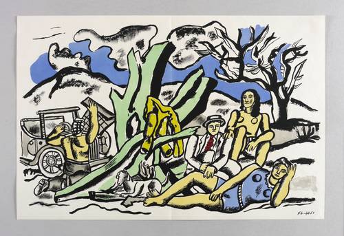 1951. Farblithografie / Kreide- & Pinsellithografie, in 7 Farben, auf leichtem hellgelbem Werkdruckpapier. – Originale Künstlergrafik, von Fernand Léger. – 33,7 x 52,1 cm (Darstellung / Druckbild), 36 x 54 cm (Blatt).