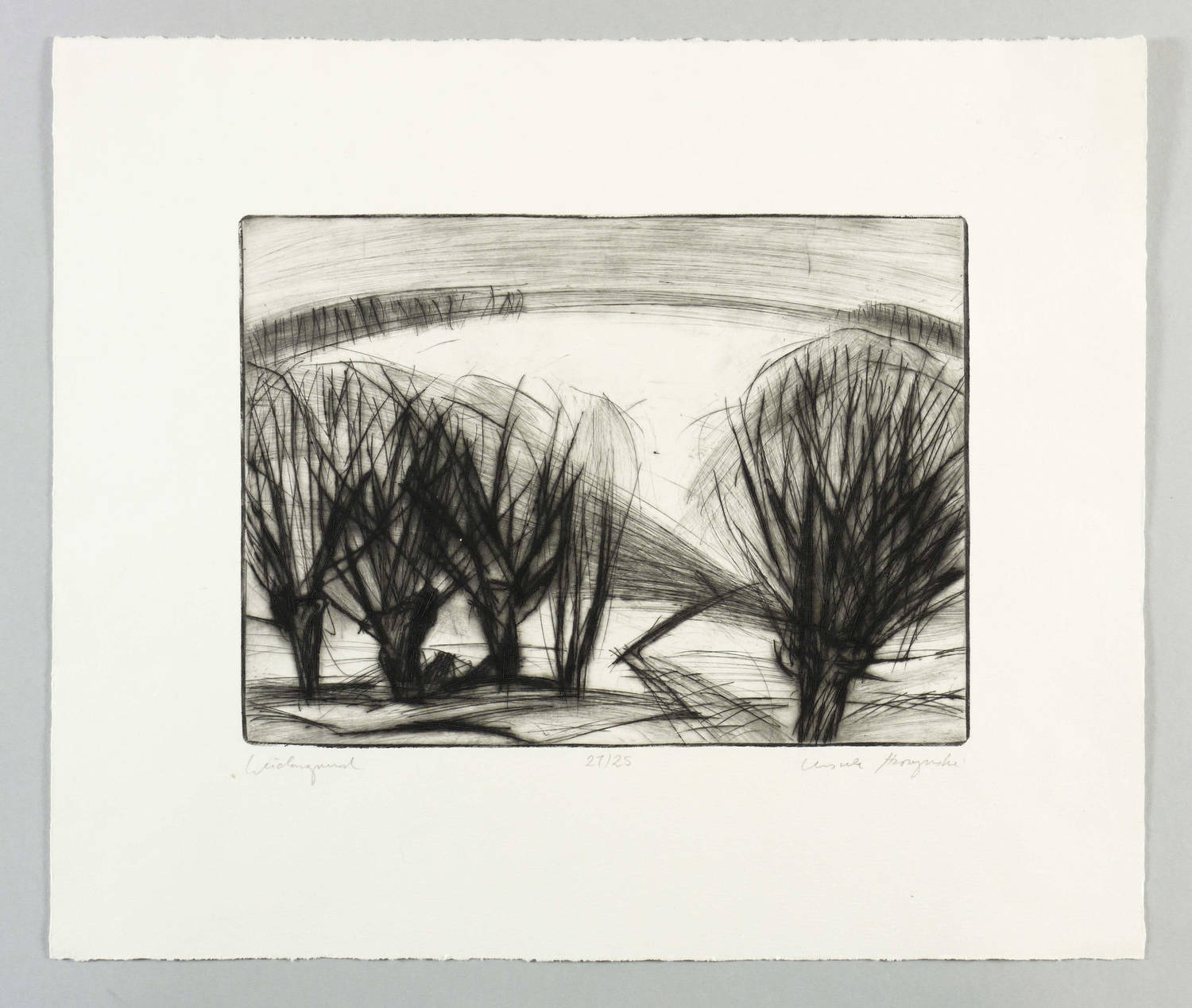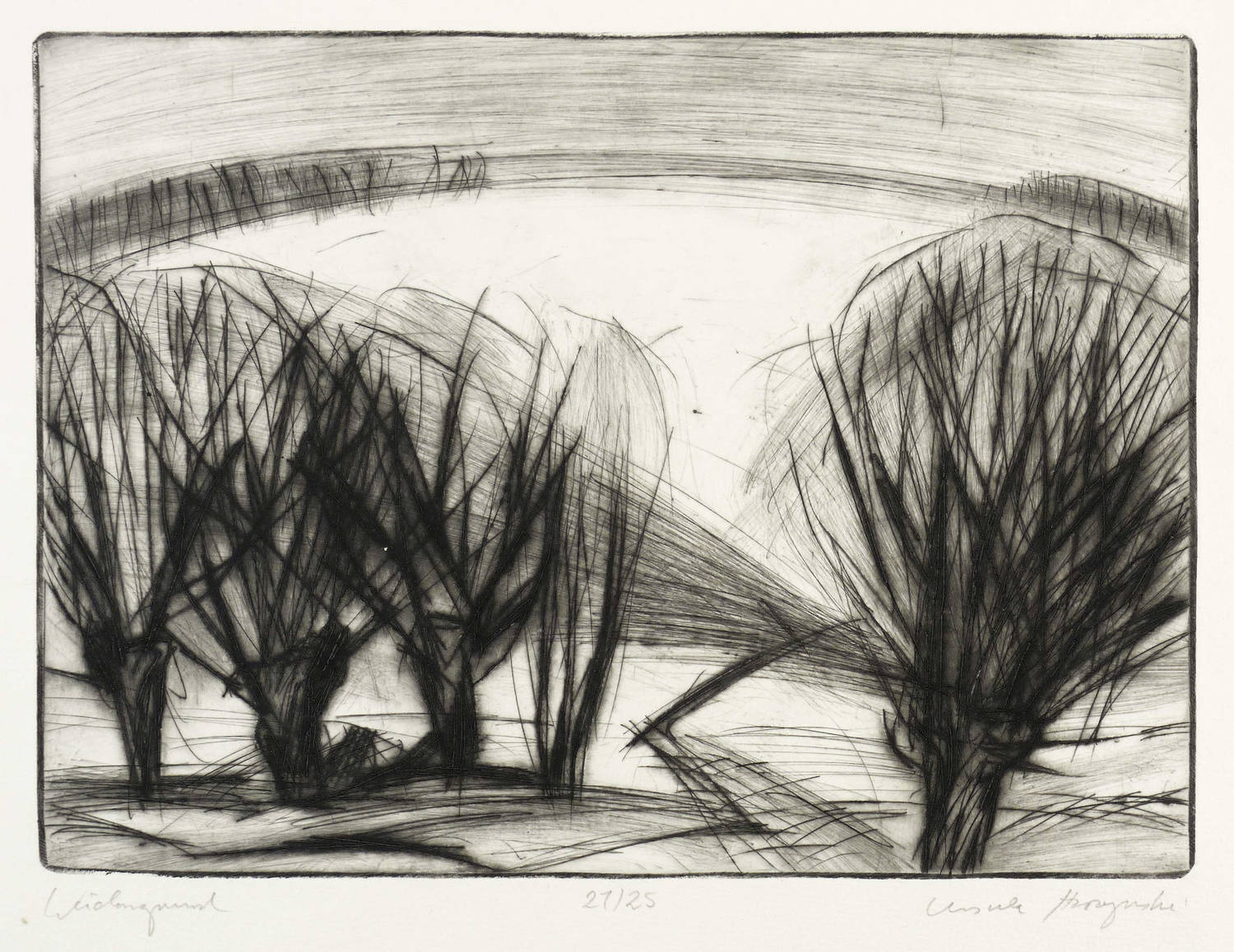 1980-1985. Radierung / Kaltnadel, in Schwarz, auf weißem Velin. – Originale Künstlergrafik, von Ursula Strozynski. – Auflage Exemplar Nr. 21/25. – 20,9 x 28,6 cm (Darstellung / Platte), 36 x 43 cm (Blatt).